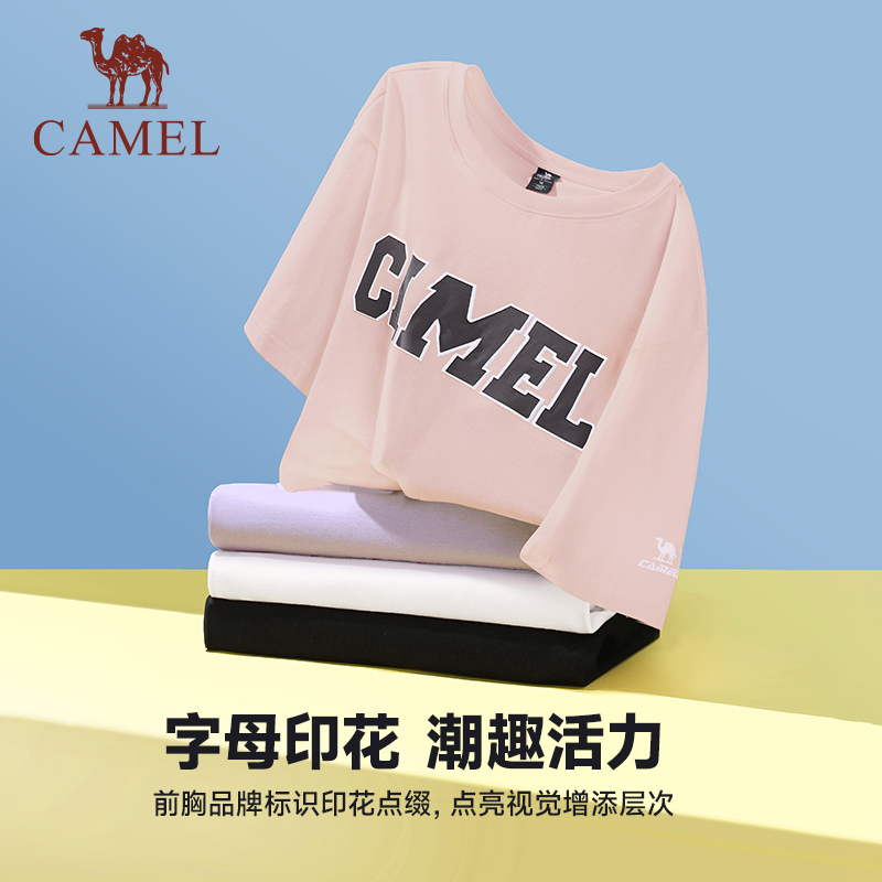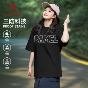 棉感男女同款 新款 防水防晒宽松上衣 T恤女2025春夏季 骆驼运动短袖