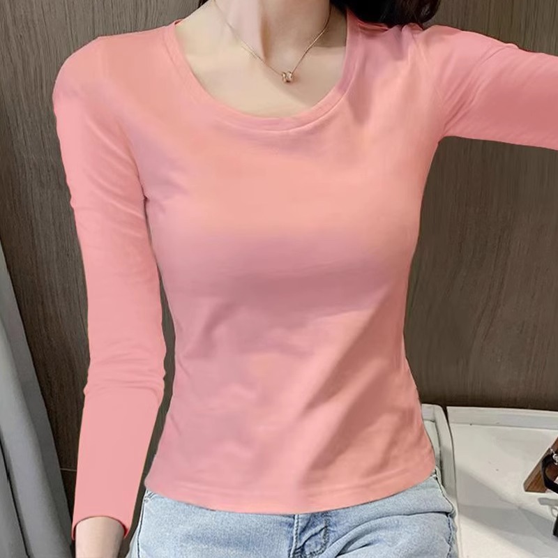 女2025新款 内搭上衣春秋款 大码 t恤修身 圆领纯棉长袖 白色打底衫