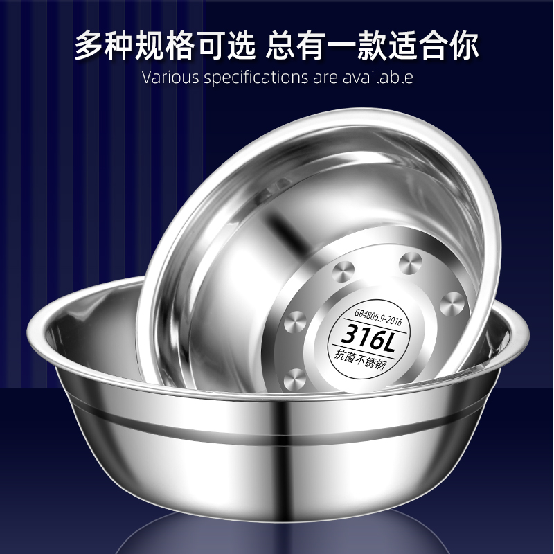 三四钢®316L不锈钢盆沥水篮洗菜盆家用淘米盆加厚和面盆淘米神器