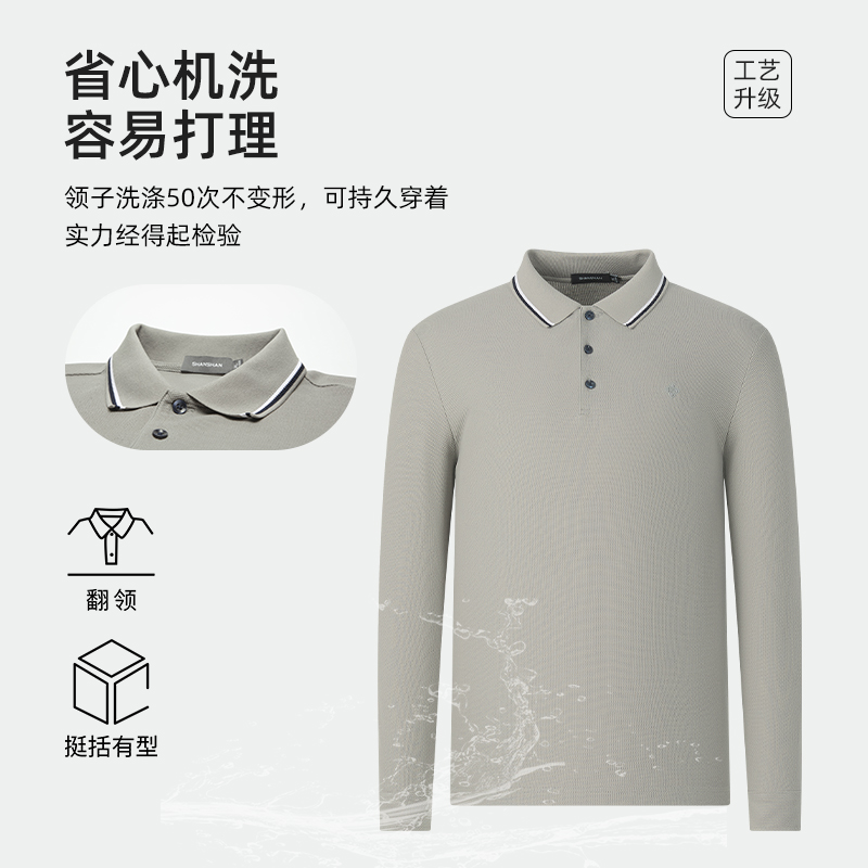 撞色纯棉polo衫 SHANSHAN杉杉男士 新款 T恤翻领2025春季 上衣男 长袖