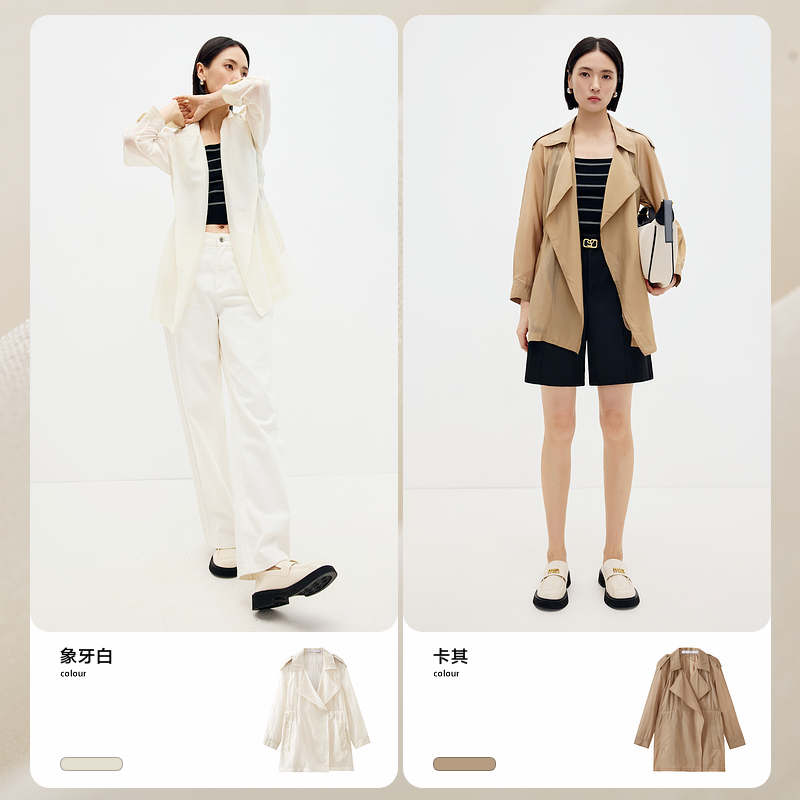 老钱风双排扣收腰廓形长款 新款 ONLY2025秋季 显瘦外套 王牌风衣