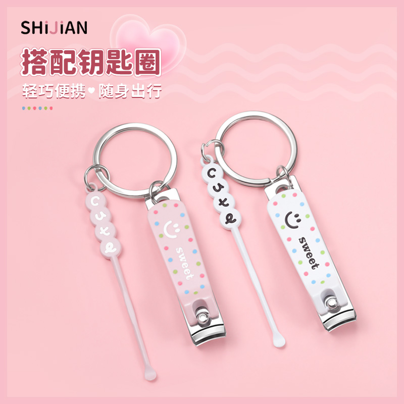 适见指甲刀女生可爱指甲剪挖耳勺套装 便携单个钥匙圈小指甲钳家用