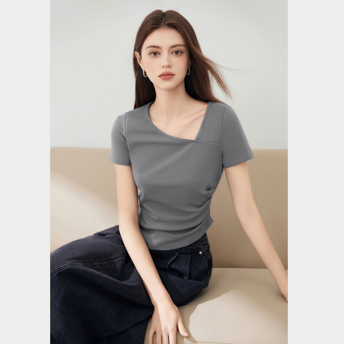 新款 2025夏季 简约设计感纯色显瘦上衣 T恤女短袖 MEETLADY时髦修身