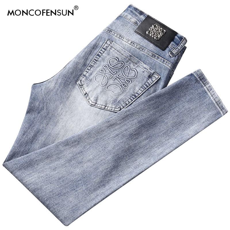 男2025夏季 森马牛仔裤 新款 长裤 森柔牛仔 复古水洗小脚裤 商场同款