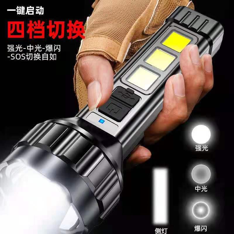 新款 强光手电筒COB侧灯户外便携可充电led迷你超亮远射