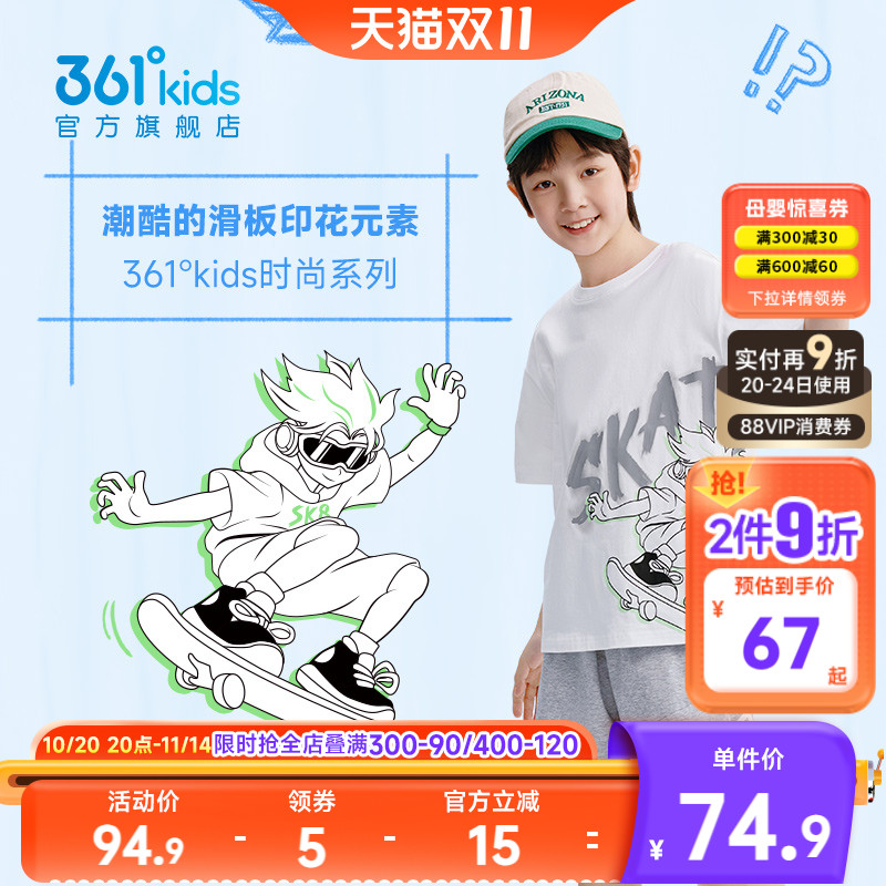 中大童滑板纯棉潮酷儿童时尚 361童装 新款 T恤2025夏季 上衣 男童短袖