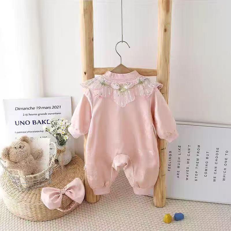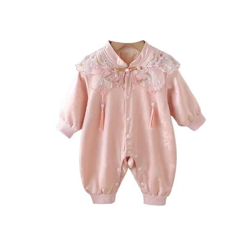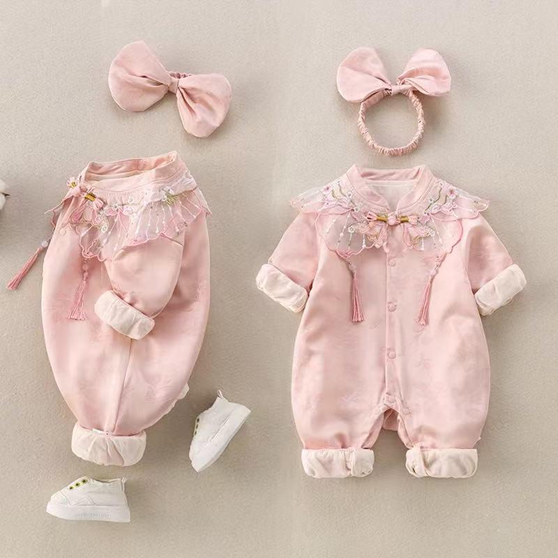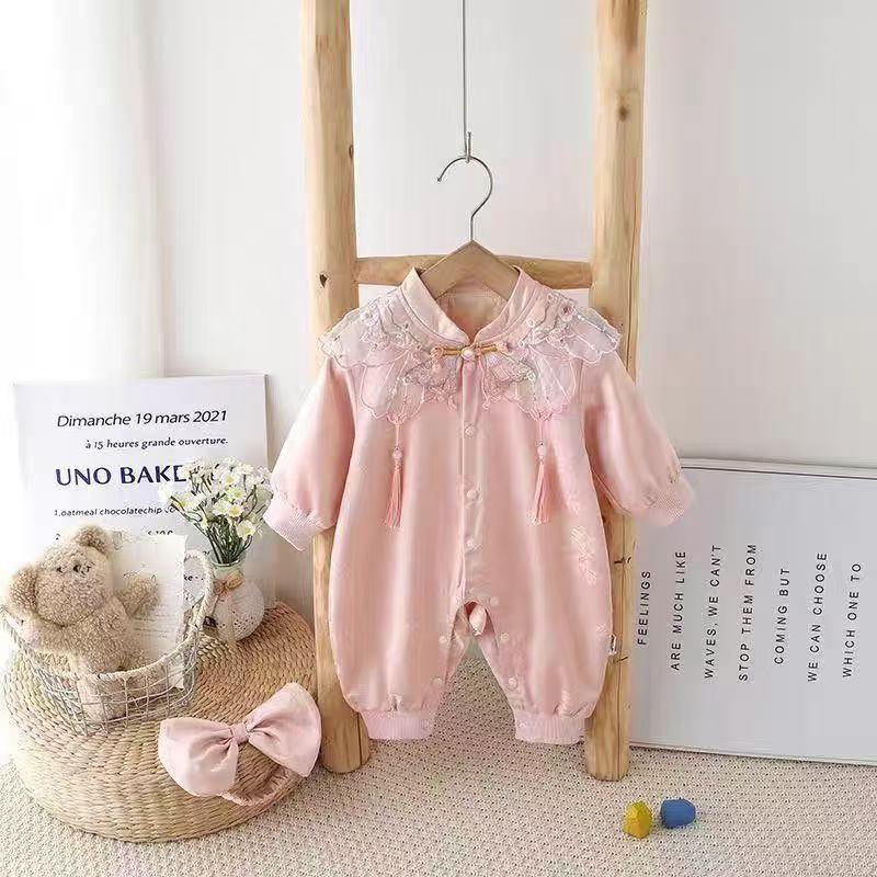 国风女宝宝婴儿衣服春装 春季 春秋款 双层秋款 汉服 连体衣长袖 新中式