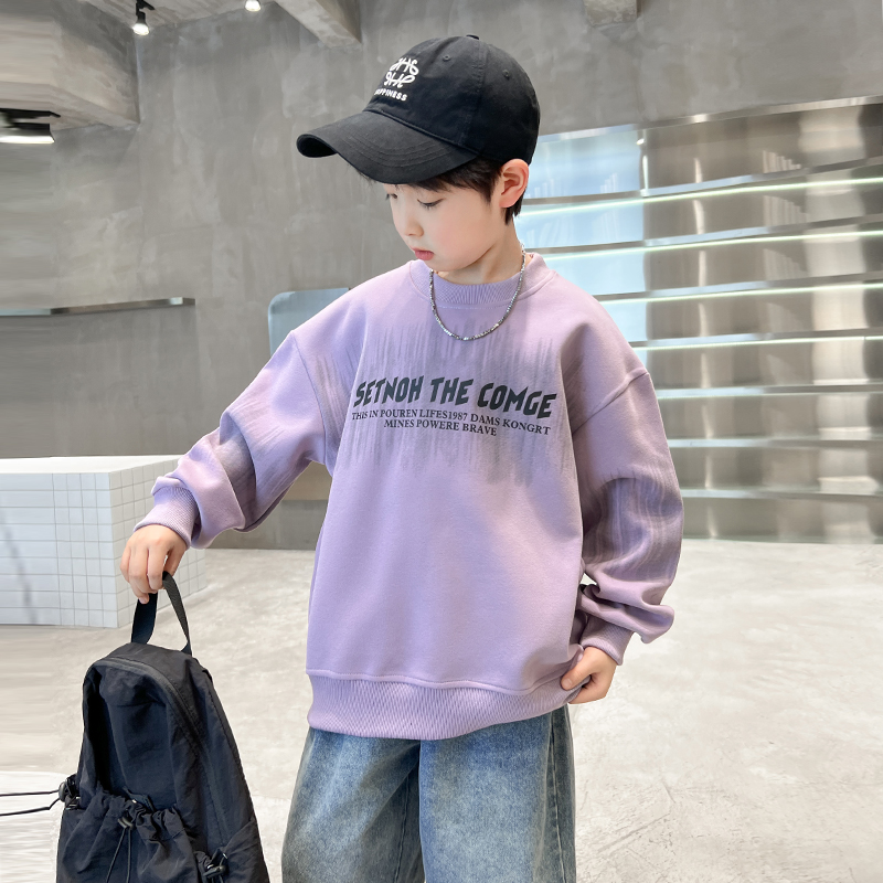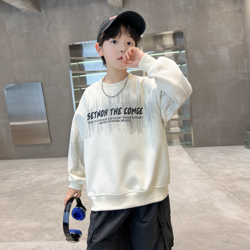 男大童春秋韩系宽松运动卫衣2025新款 帅气白色上衣潮 儿童男孩秋装