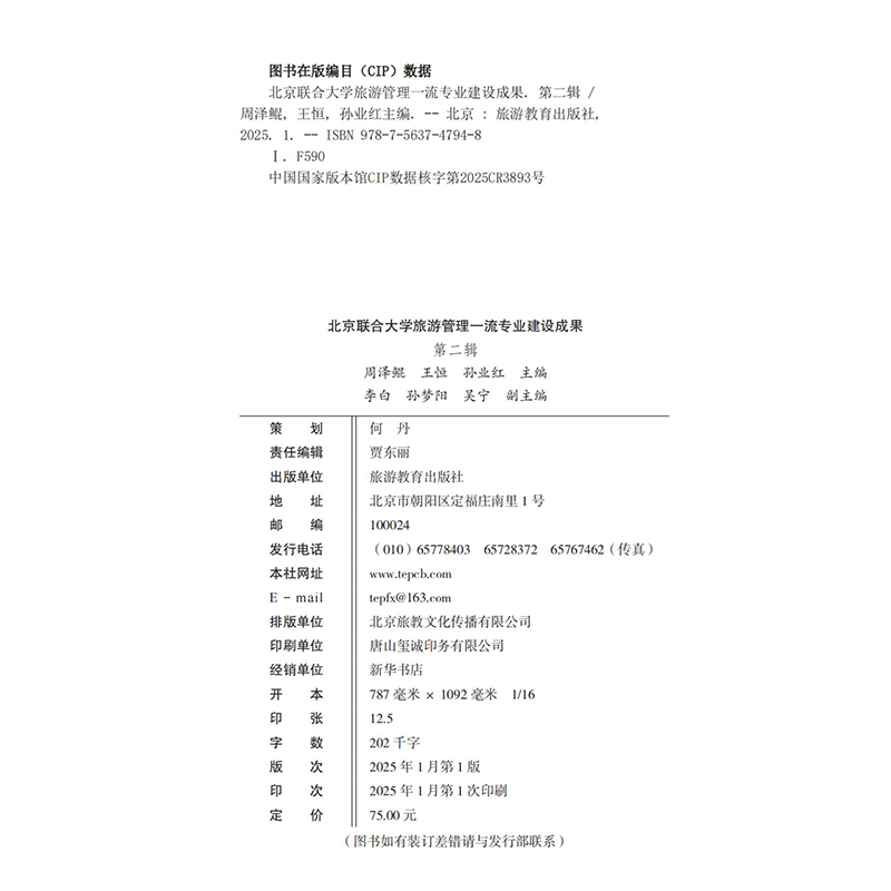 9787563747948中国旅游教育研究文丛 孙业红主编 北京联合大学旅游管理一流专业建设成果:第二辑周泽鲲 王恒