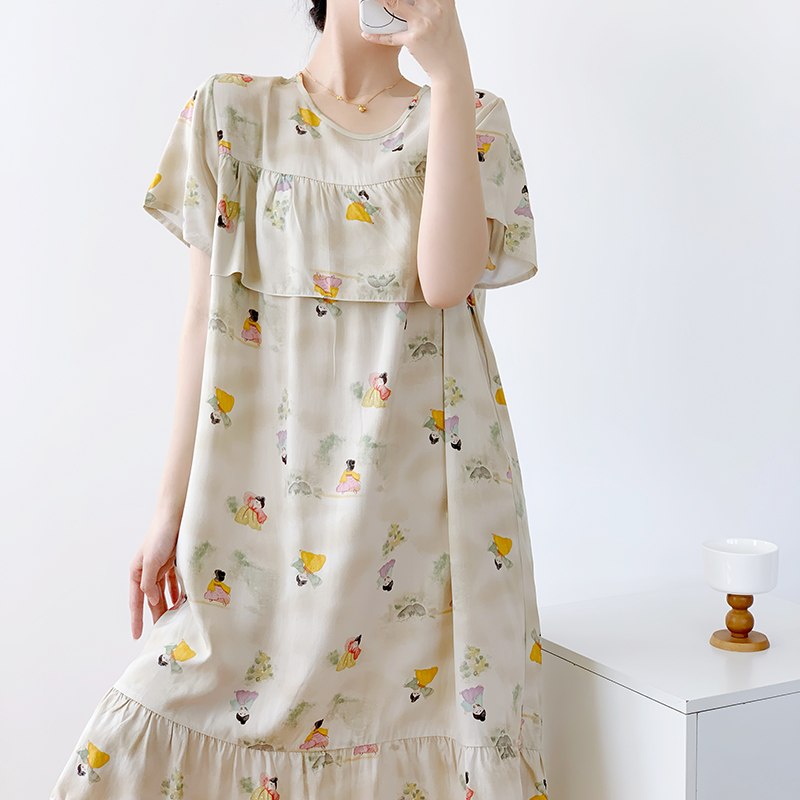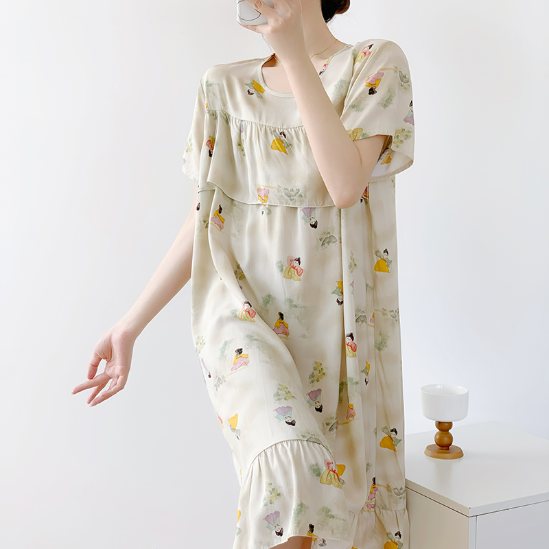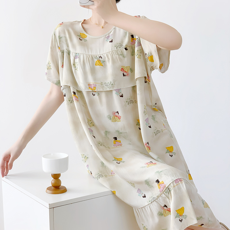薄款 新款 防凸点透气睡衣夏天大码 家居服睡裙女款 可爱绵绸睡裙 韩版