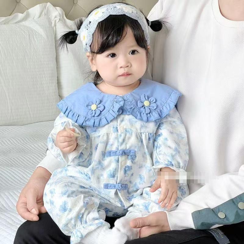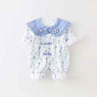 春装 连体衣女婴儿衣服宝宝满月百天洋气公主哈衣新生儿春秋外出服
