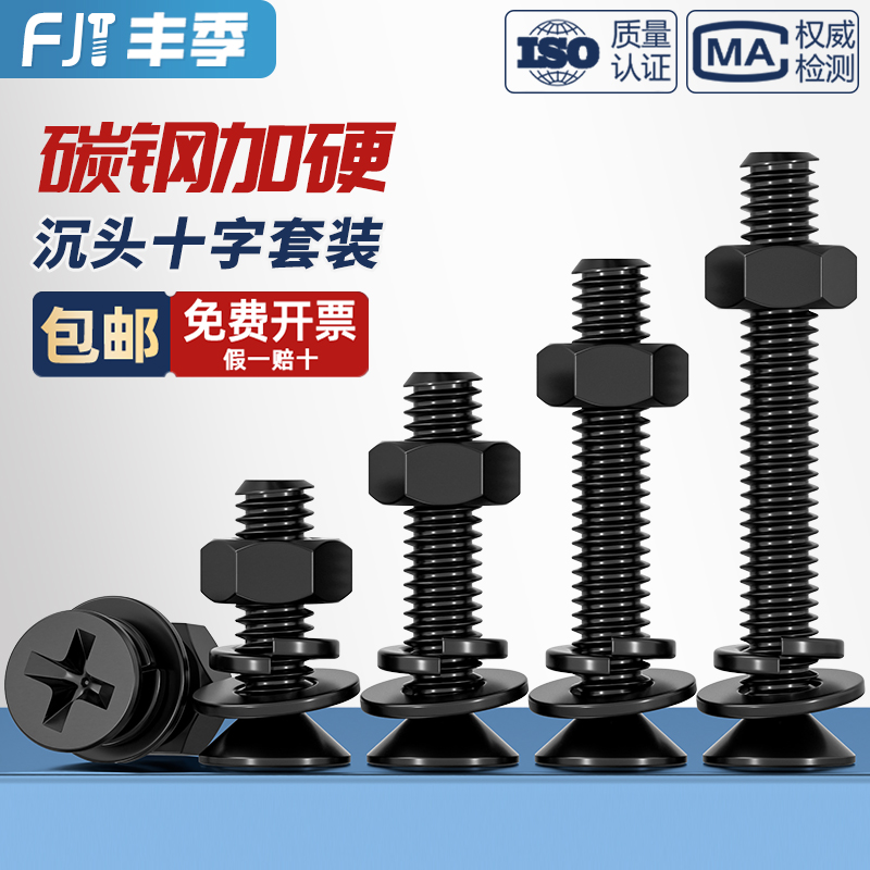 碳钢黑色沉头十字螺丝螺母套装 组合大全平头螺钉螺帽平垫弹垫M3M4