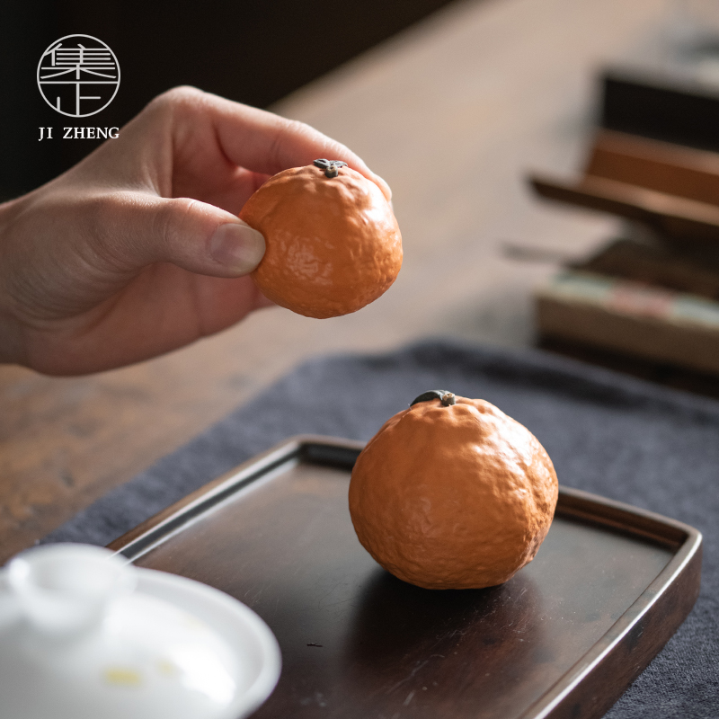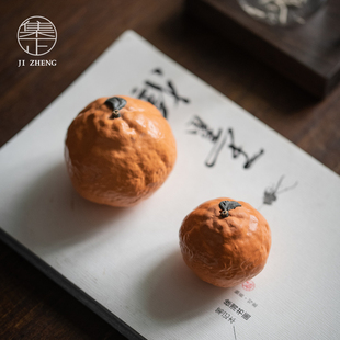 创意仿橘子摆件茶道可养手工小茶玩 陶瓷个性 集正 宜兴紫砂茶宠