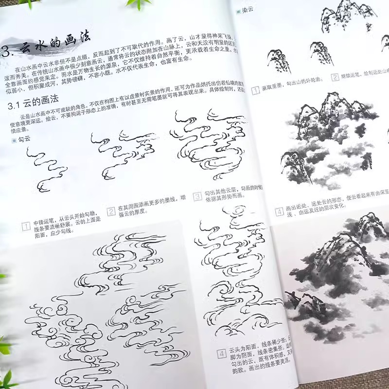 毛笔画临摹写意山水画技法绘画书 国画基础教程山水篇 山水画临摹范本基础技法教程书 书籍 国画临摹画册底稿技法教程绘画书籍 正版