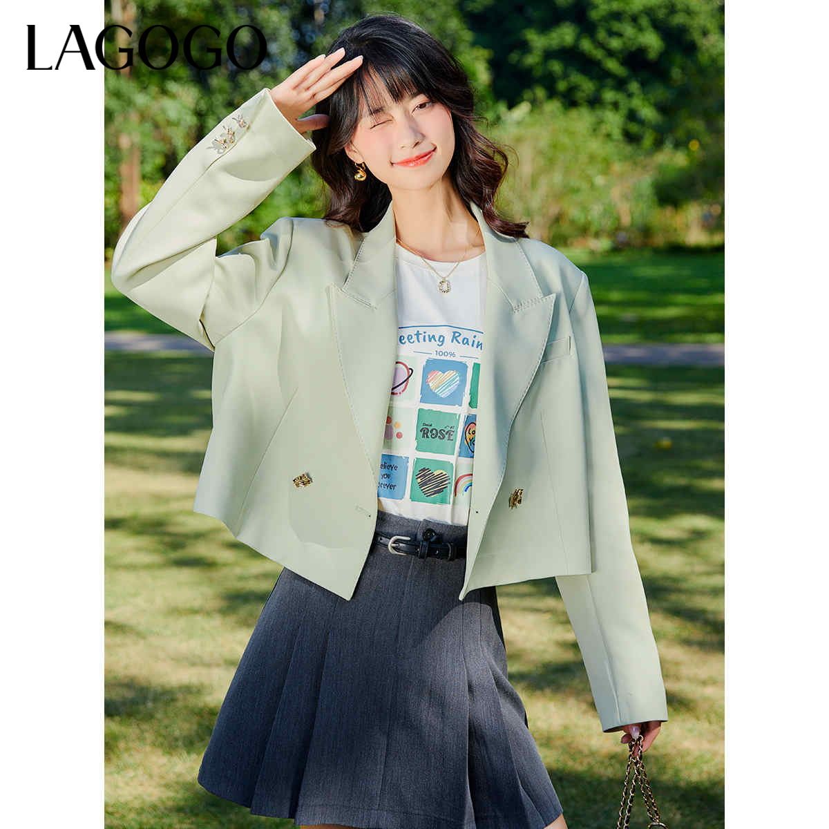 通勤男女秋季 拼色刺绣混纺西装 西服外套 陈伟霆同款 canotwait