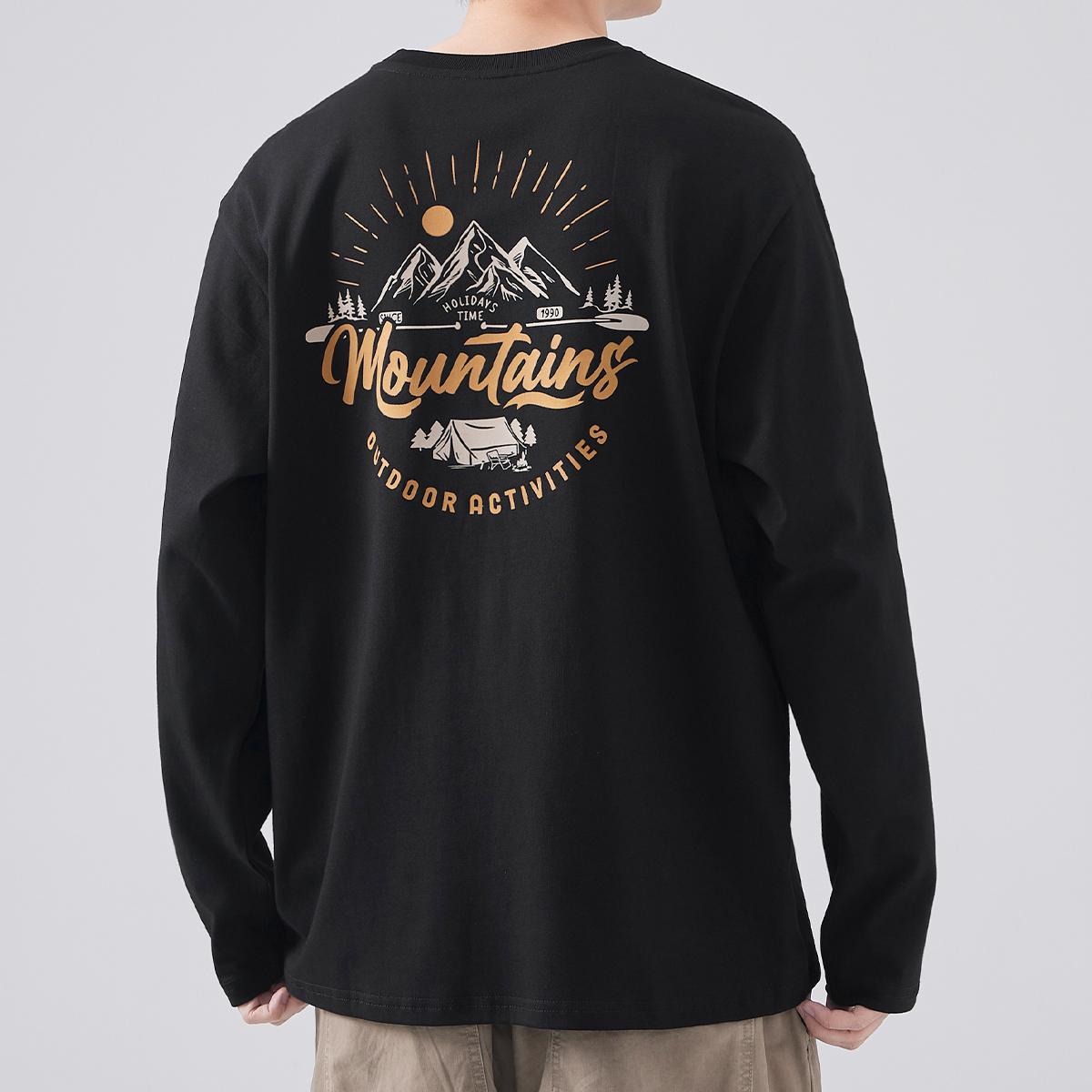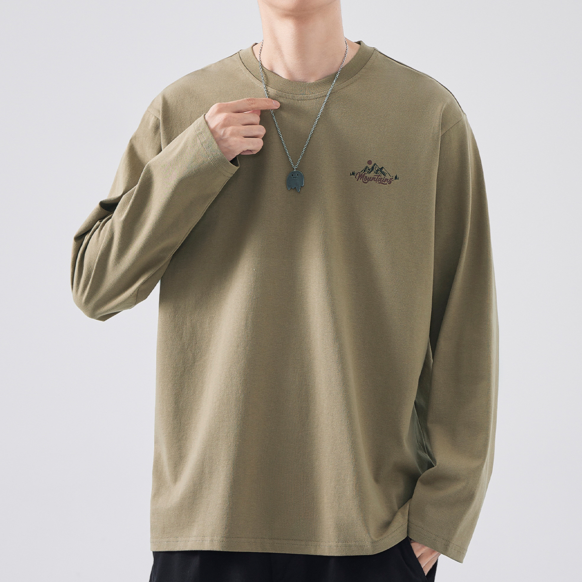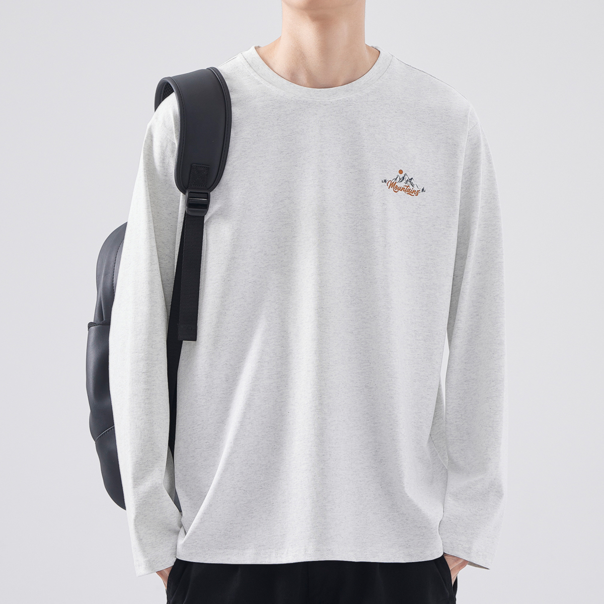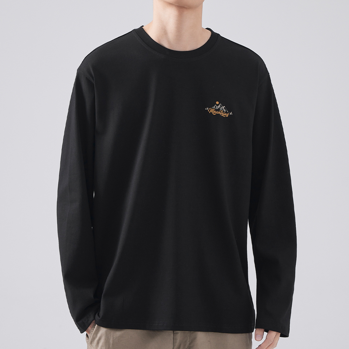 新款 hansca t恤男潮牌春季 印花长袖 圆领套头上衣休闲卫衣 重磅美式