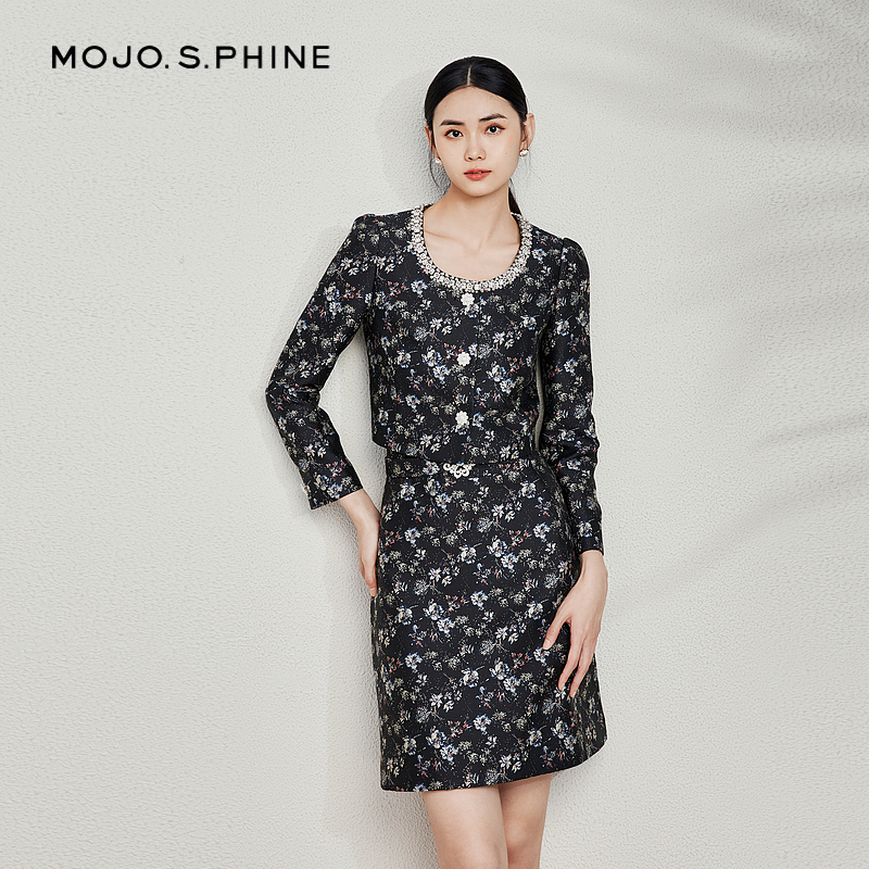 女日系碎花雪纺长款 提花针织短袖 半身裙 BABY2025年秋新款 BANANA