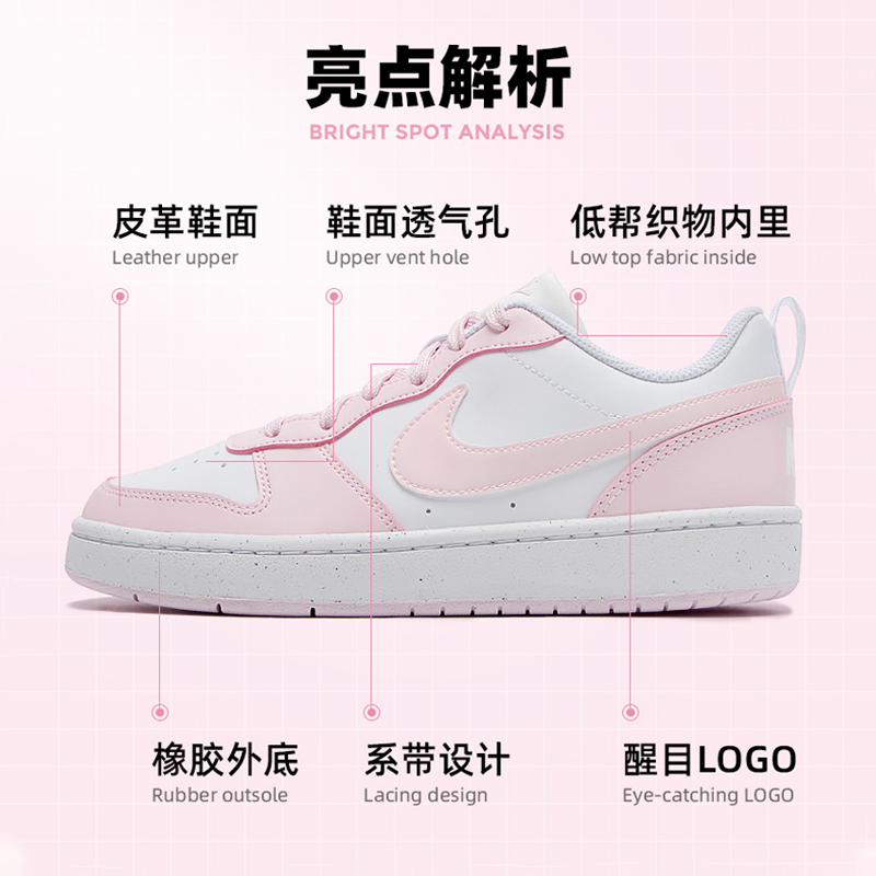 2025新款 女鞋 COURT 运动鞋 NIKE耐克官方正品 粉色低帮休闲鞋 板鞋