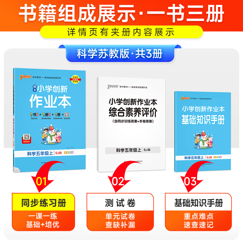25秋 科学小学学霸作业本五年级课本同步练习册知识点提优训练上下册练习题科学试卷达标测试实验视频天天练PASS绿卡图书 苏教版