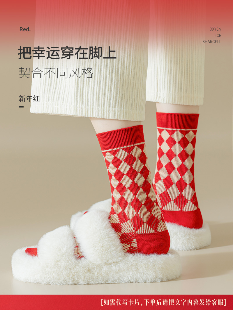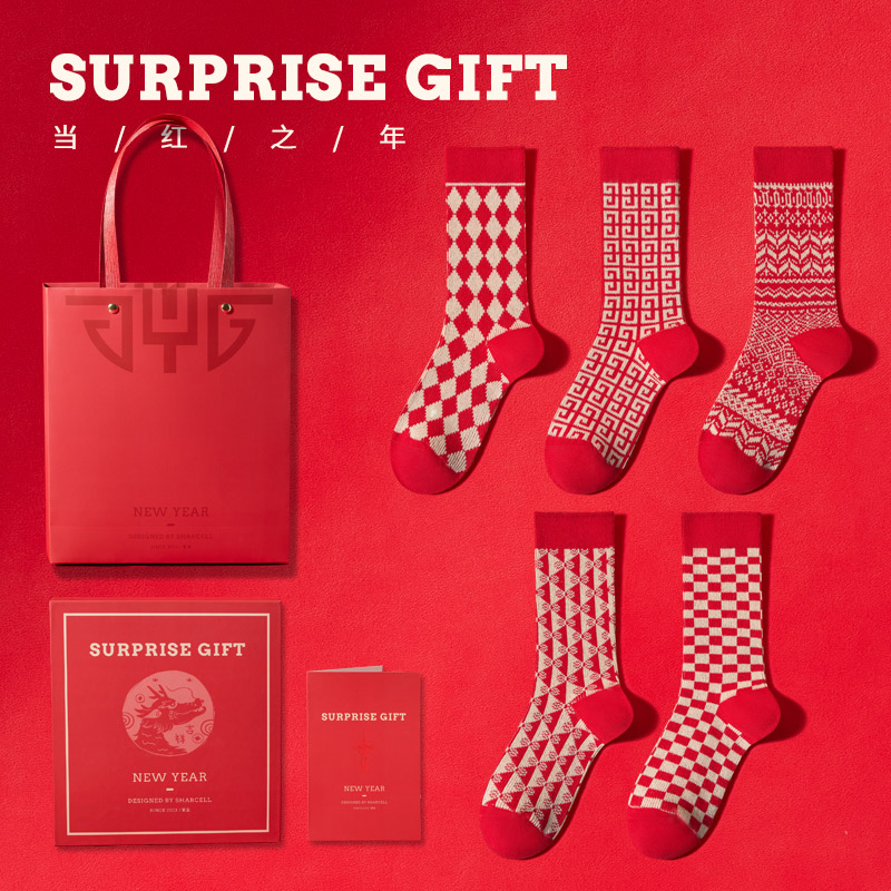 2025新年红袜子本命年纯棉龙年秋冬男女结婚情侣一对礼物礼盒红色
