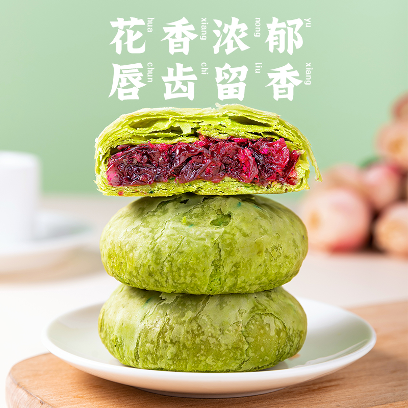 滇园 玫瑰饼传统手工糕点心云南昆明特产 七彩鲜花饼400g礼盒装