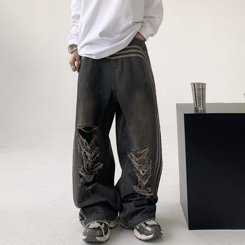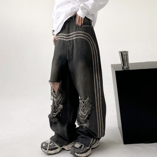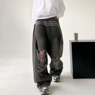 新品 2025秋季 复古做旧水洗丹宁宽松时髦宽松直筒牛仔长裤 GXG男装