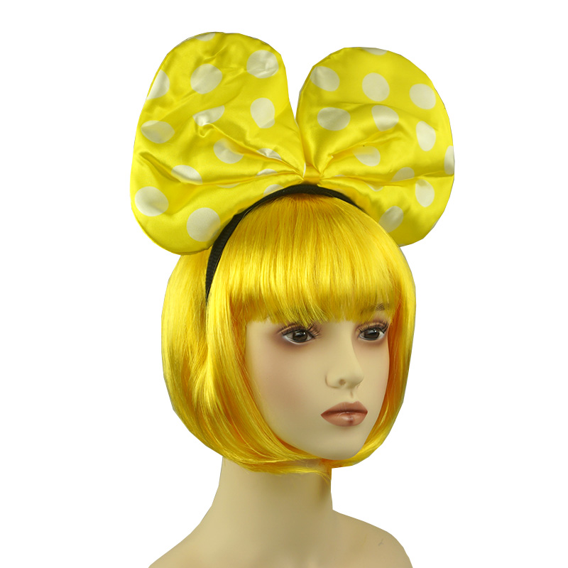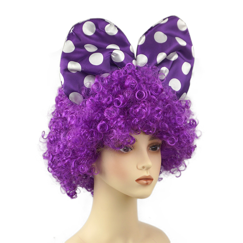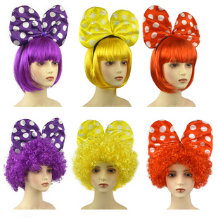 年会装 扮彩色假发波波发爆炸头短卷发送大蝴蝶结活动道具搞怪搞笑