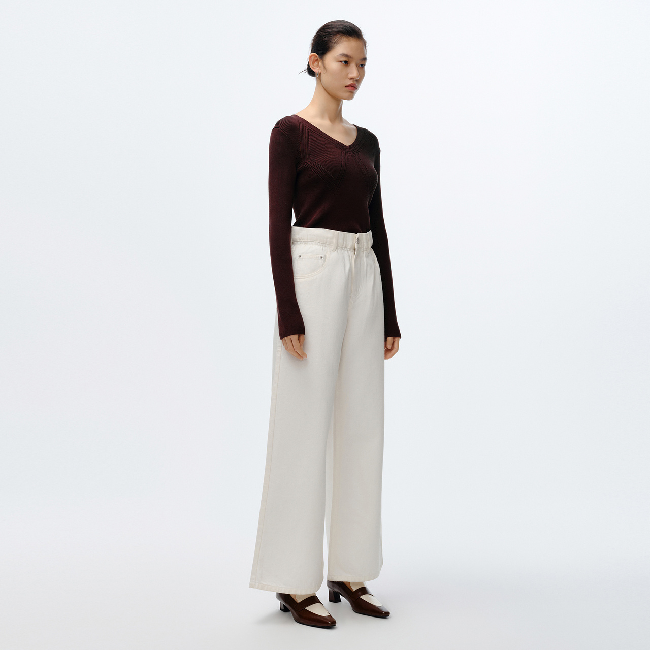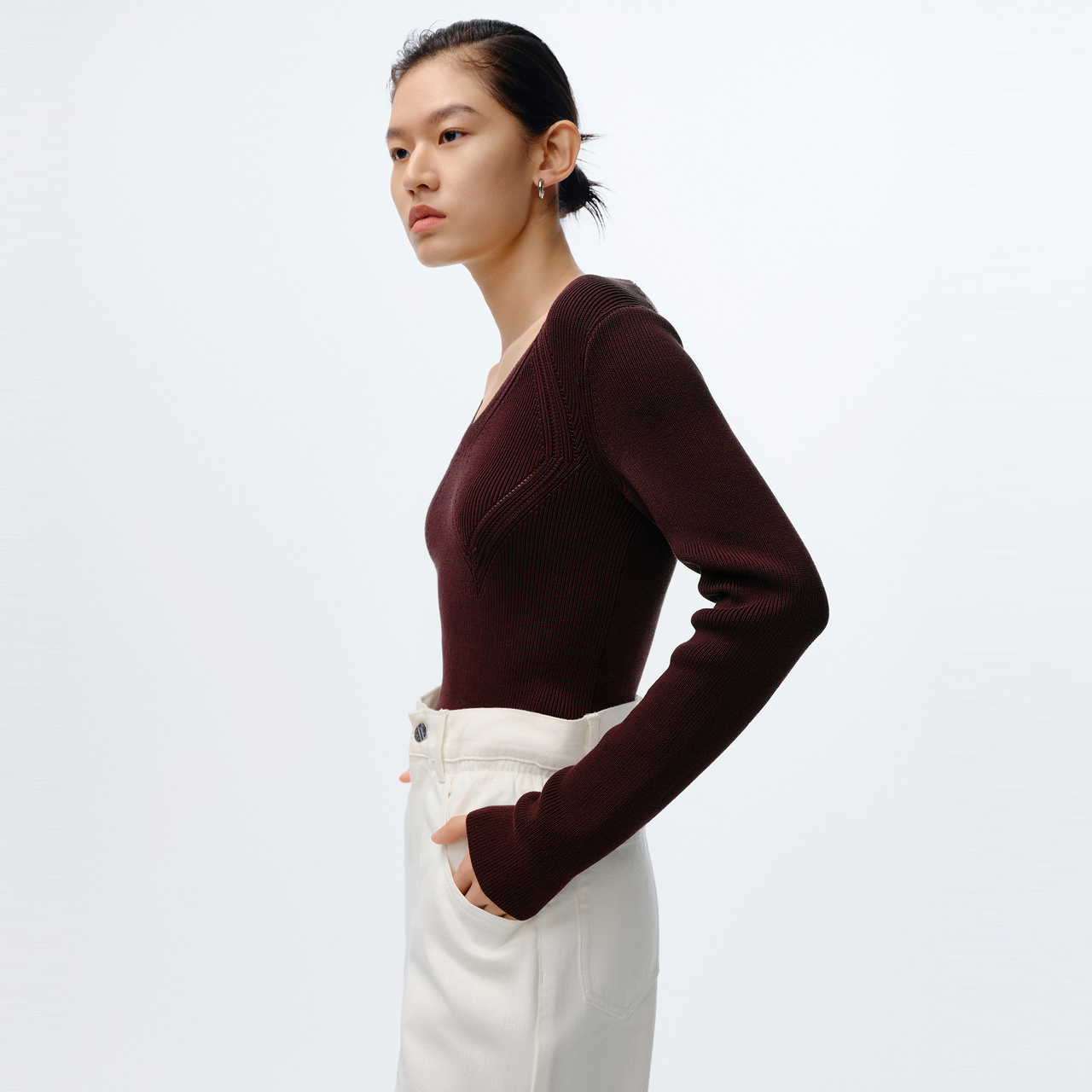 桑蚕丝V领套头菱形设计长袖 春季 IMM尹默女装 毛衫 商场同款