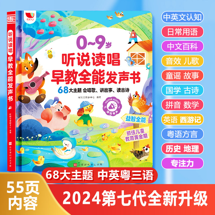 听说读唱早教全能点读发声书 24年新七代升级款 英语粤语幼儿启蒙古诗三百首3岁儿童益智宝宝启蒙认知拼音歌谣 早教有声书 会说话