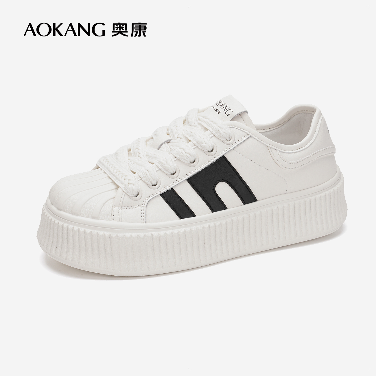门店发货 时尚 奥康女鞋 厚底圆头贝壳头鞋 百搭潮 新款