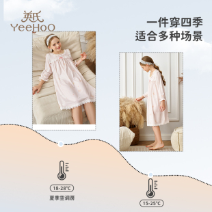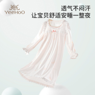 英氏女童睡裙儿童家居服2025春秋新款 睡衣 小女孩公主风莫代尔长袖