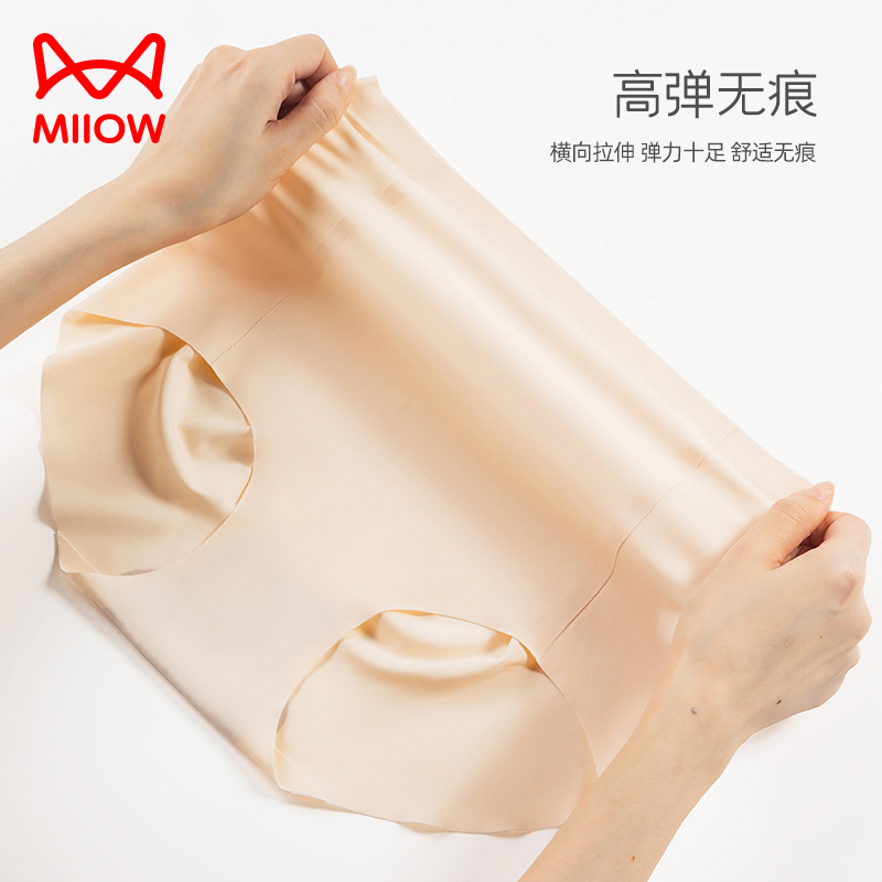 透气高弹柔软简约薄平角裤 「澎澎臀」三条装 莫妮MONI无痕女士内裤