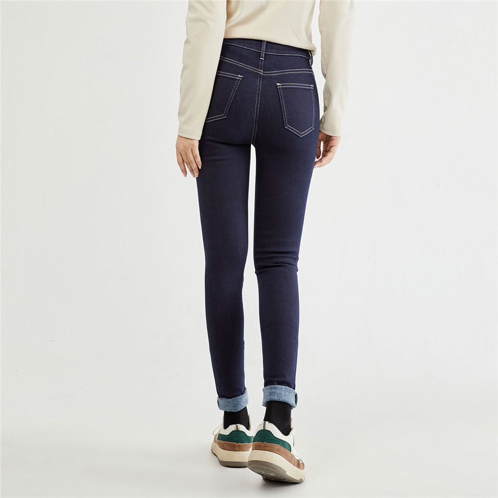 子薄绒 法棍加绒小个子九分烟管裤 蓝灰直筒牛仔裤 女高腰2025年新款