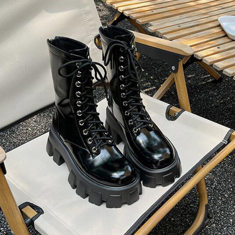 黑色增高靴子女时尚 新款 休闲皮面短靴 2025秋季 环球厚底马丁靴女款