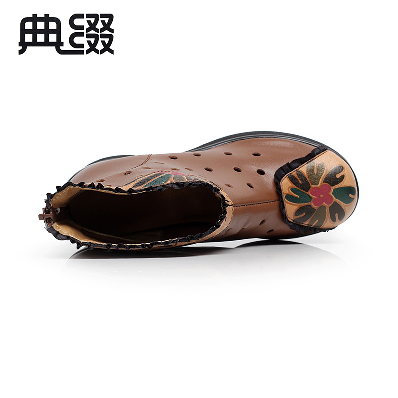 皮靴皮鞋 民族风单靴女高跟松糕鞋 厚底防水台坡跟女式 新款 2025秋季