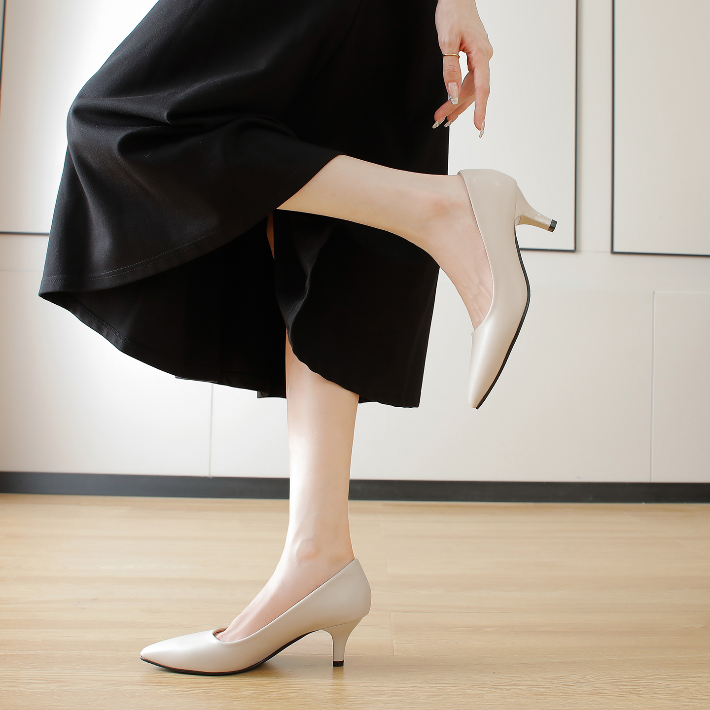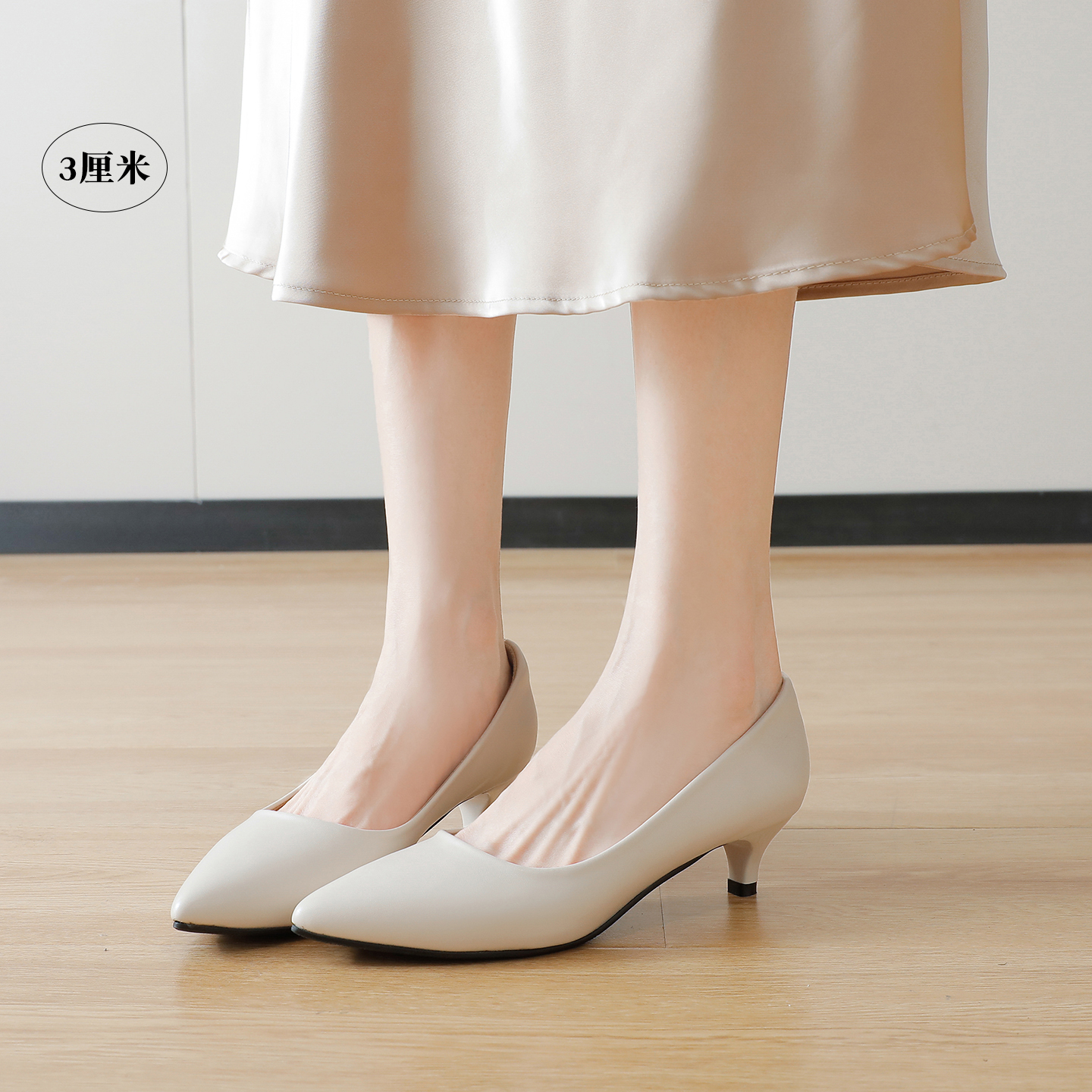 鞋 职场通勤上班面试女鞋 工装 空姐商务礼仪正装 尖头细跟米色工作鞋