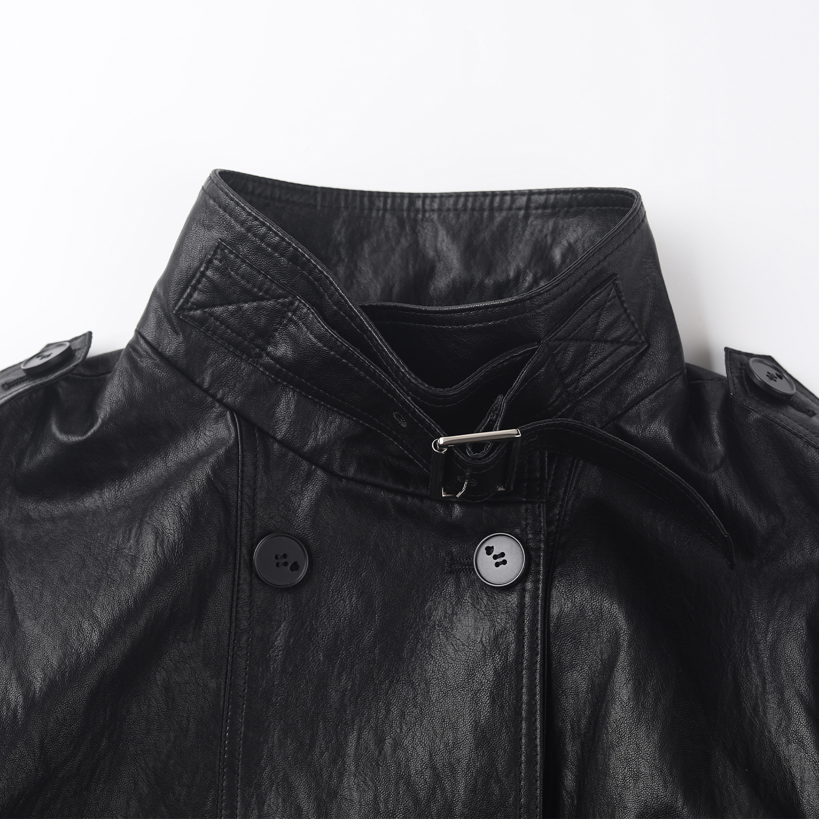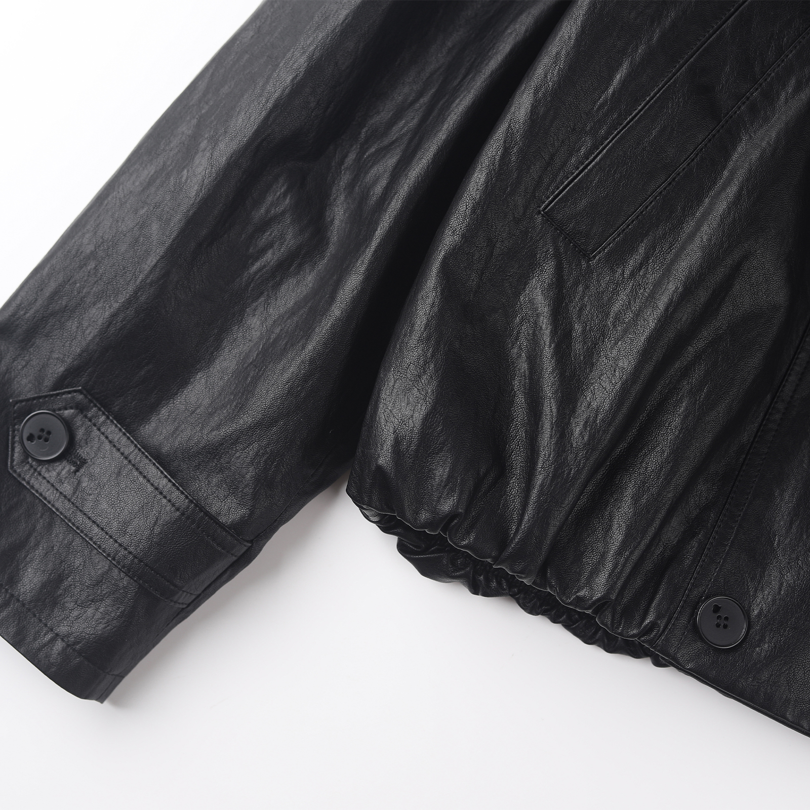 wana 黑色简约休闲廓形外套女 try环保皮立领皮衣夹克2025早秋新品