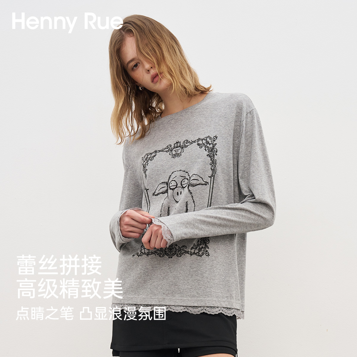 雪花棉圆领蕾丝宽松大版 猪系青年 T恤 RUE亨尼露秋冬女士 HENNY