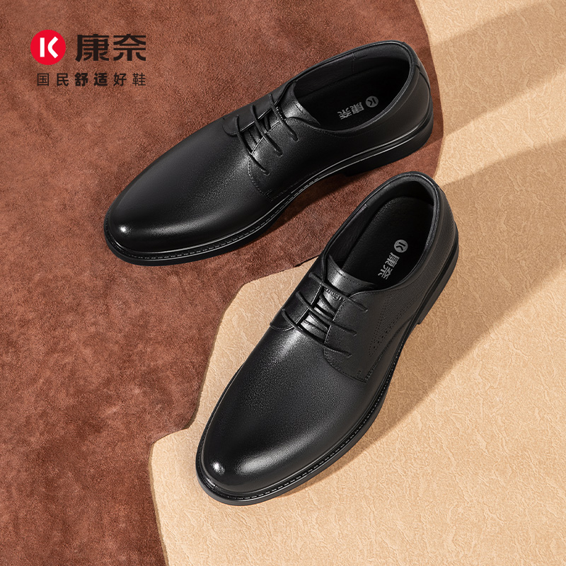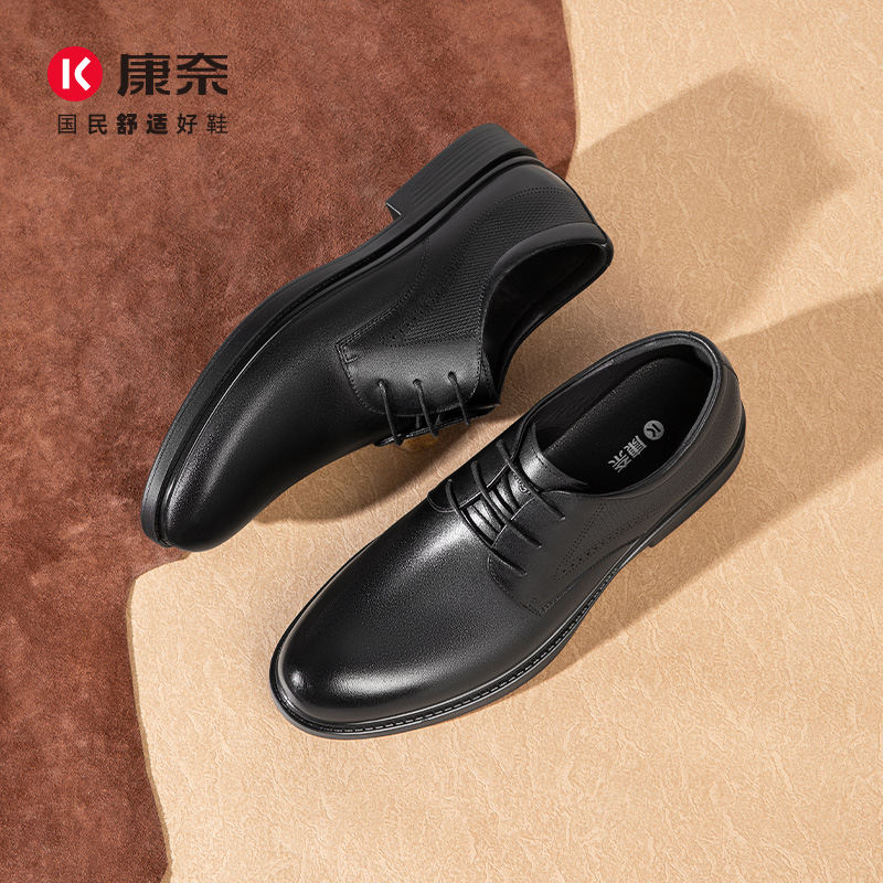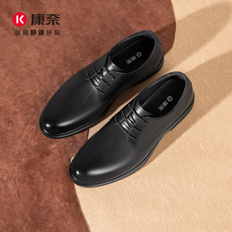 2025新款 男软底舒适上班全黑公务鞋 秋季 皮鞋 商务休闲正装 康奈男鞋