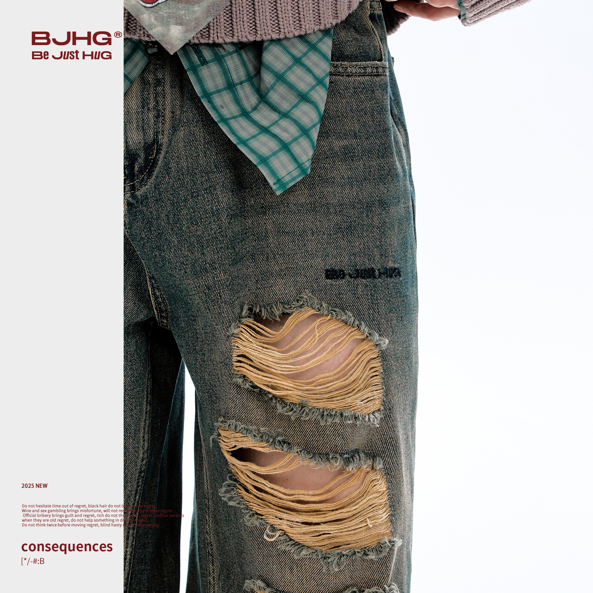辣妹毛边喇叭裤 森马牛仔裤 春季 街头2025新款 复古风 女做旧潮流时尚