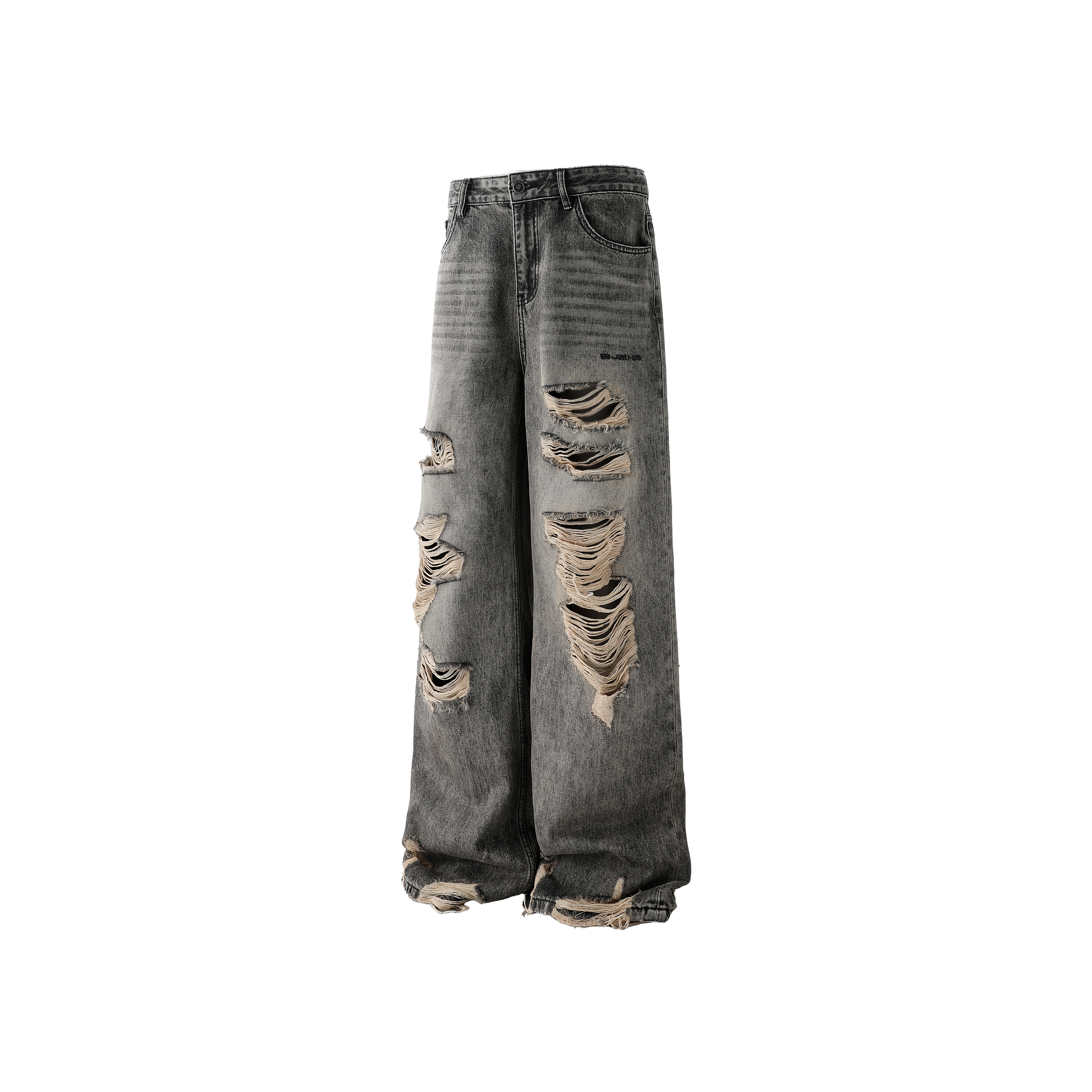 港风ins拖地阔腿裤 大码 男生复古宽松直筒裤 潮流牛仔裤 子 300斤美式