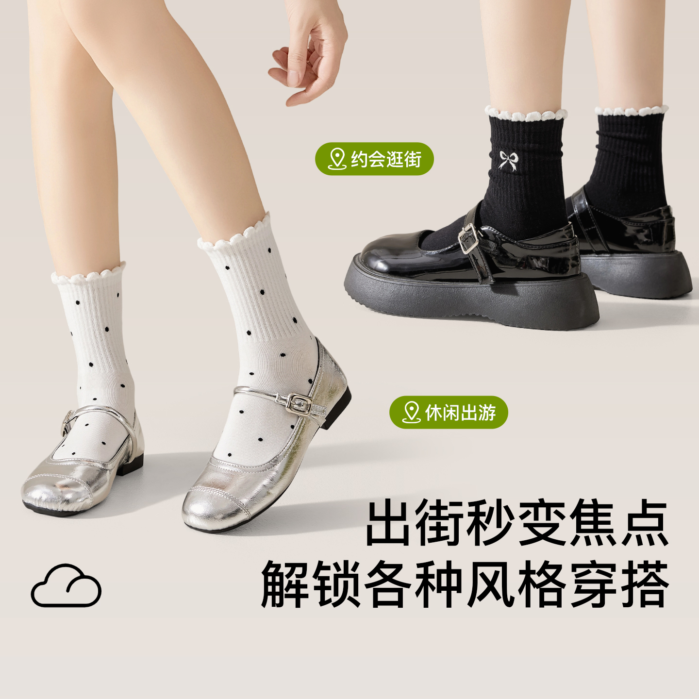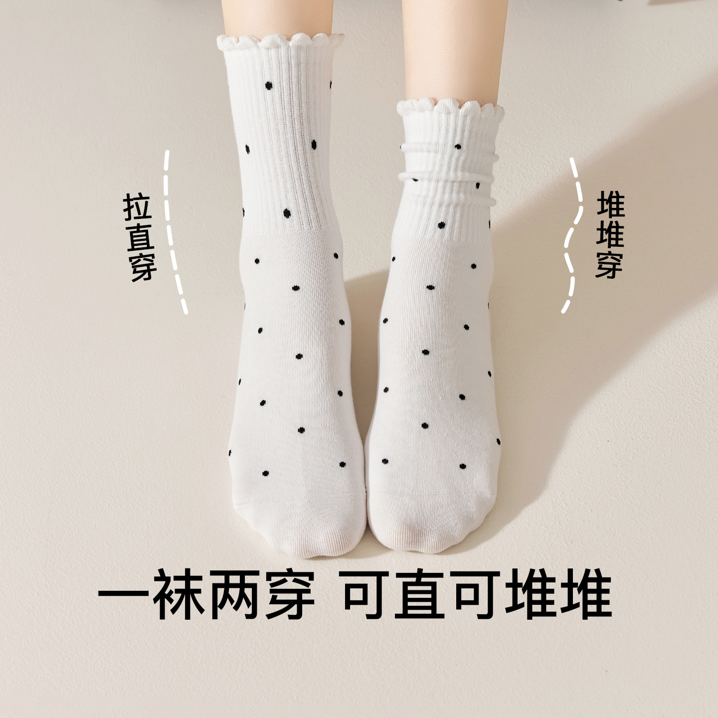 花边袜子女春秋纯棉纱线中筒袜波点蝴蝶结刺绣堆堆袜抗菌防臭棉袜