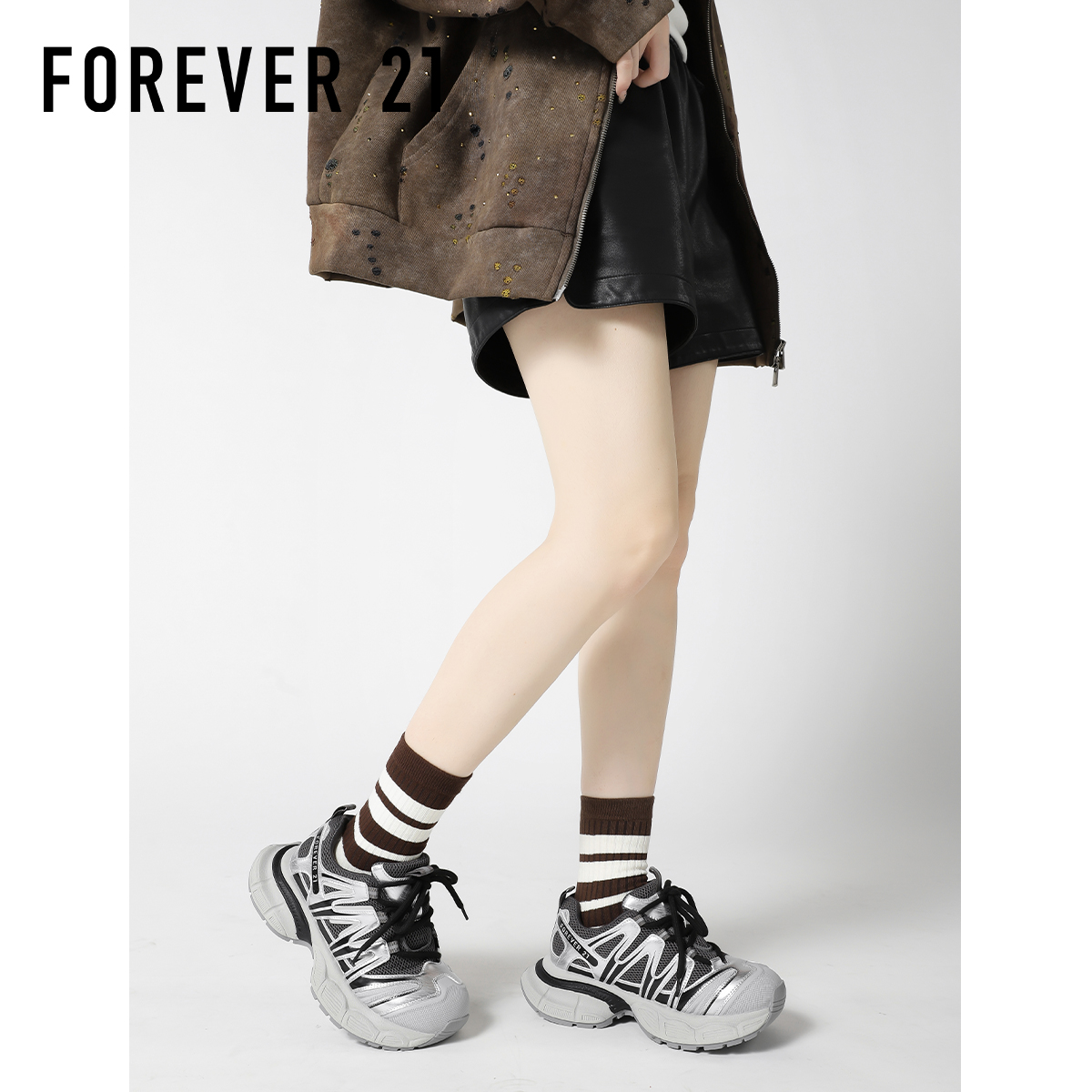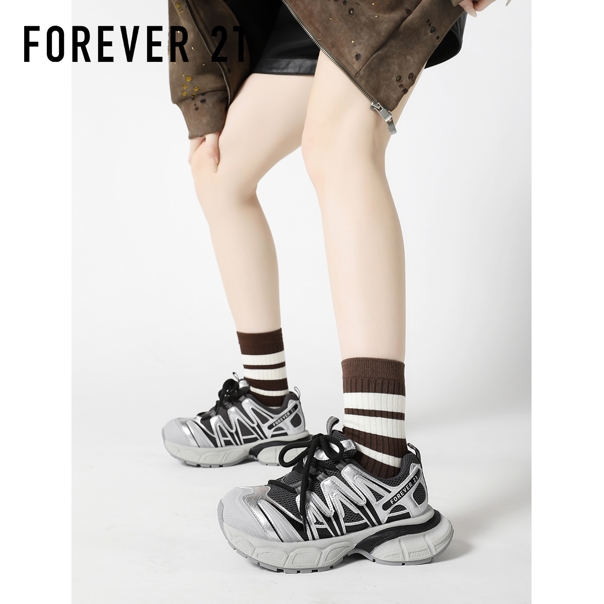 新款 女2025秋季 时尚 老爹鞋 子 安踏蝶翼 运动鞋 厚底增高银色休闲鞋