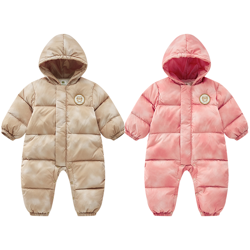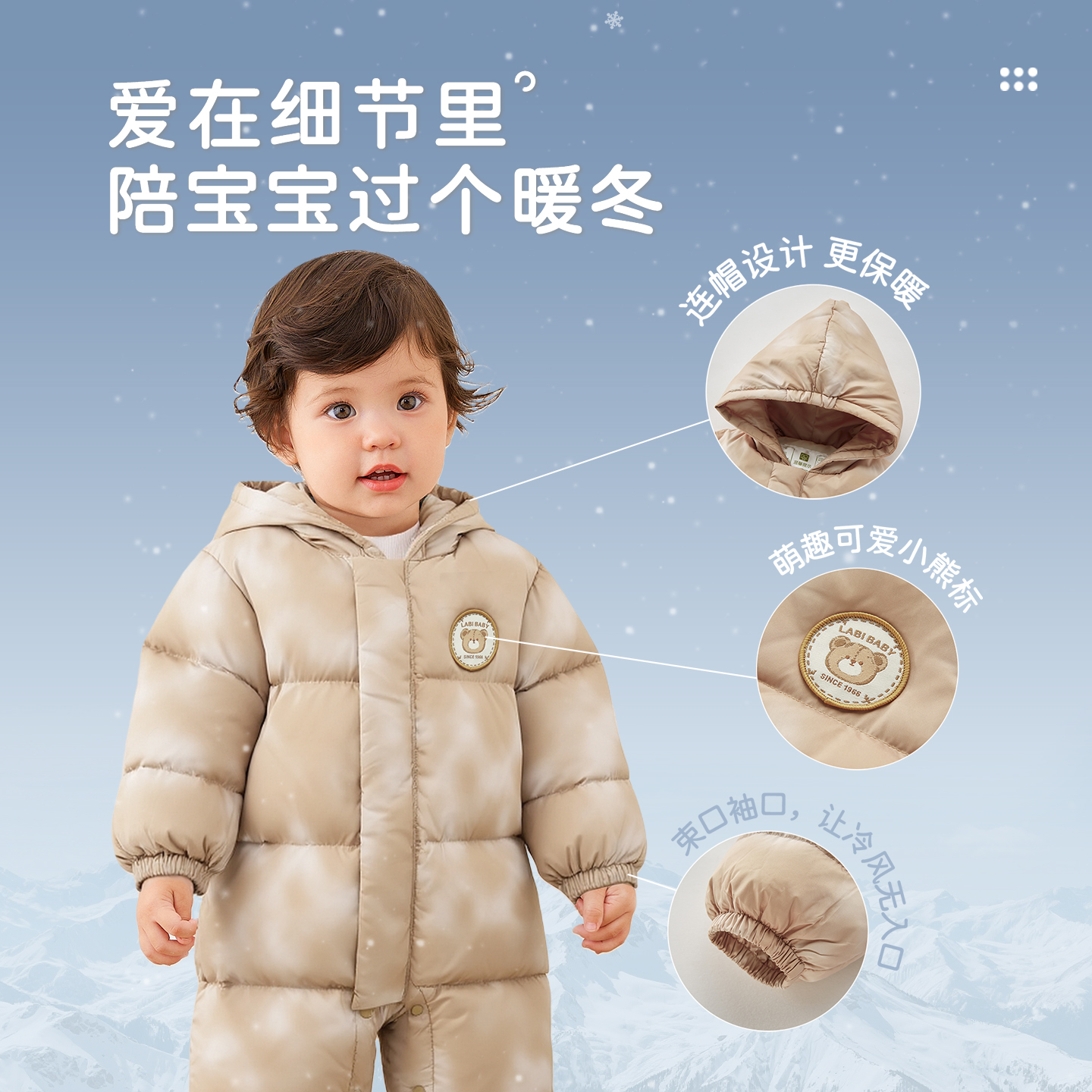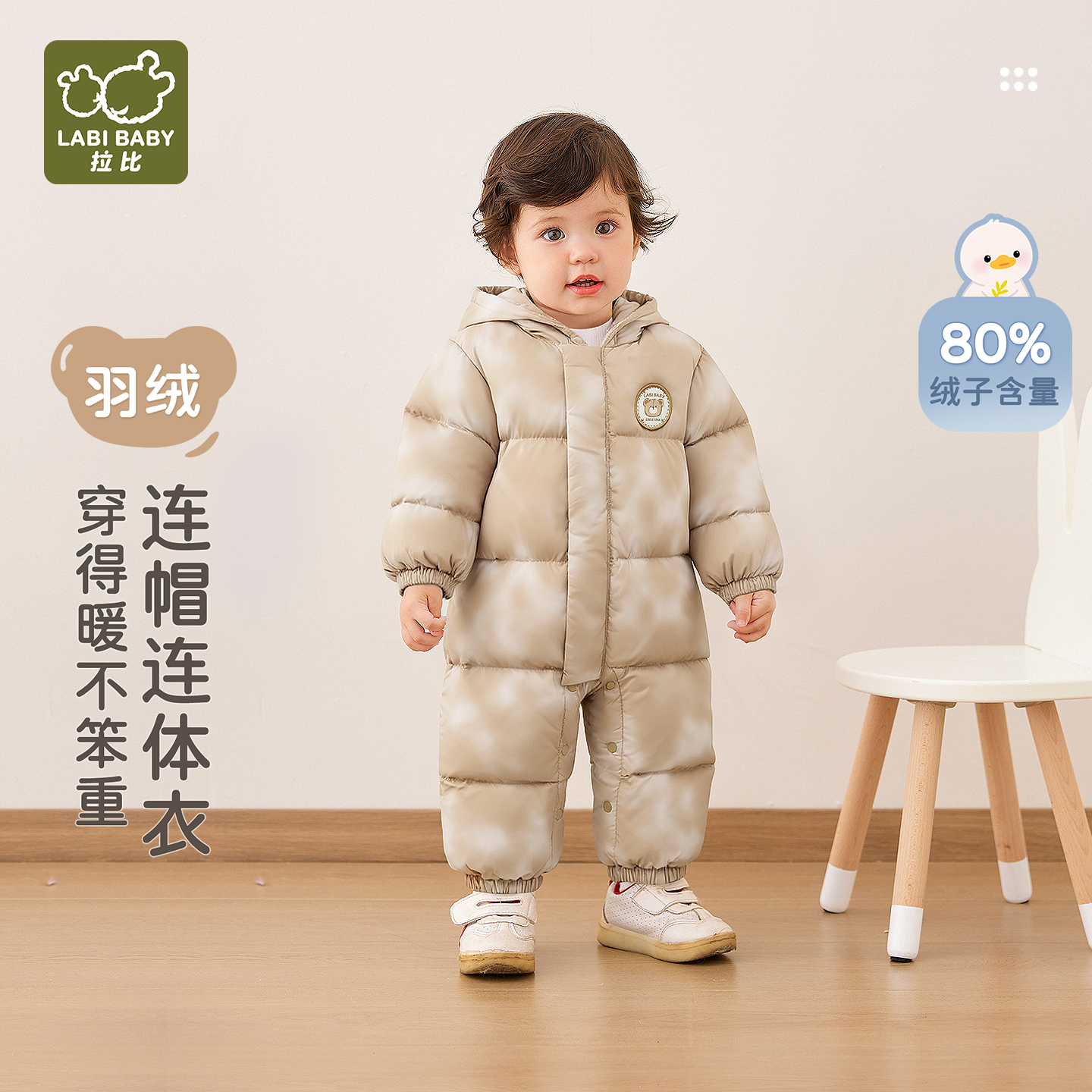 婴儿哈衣爬服 保暖防风长袖 拉比婴儿羽绒连帽连体衣2025冬季 新款