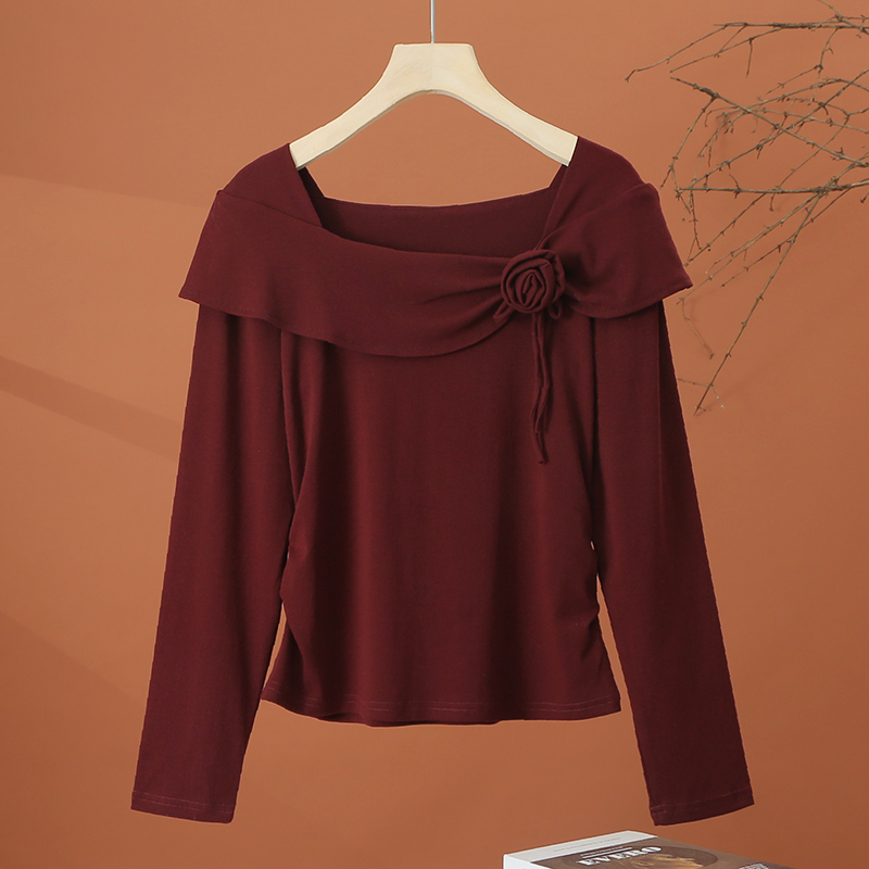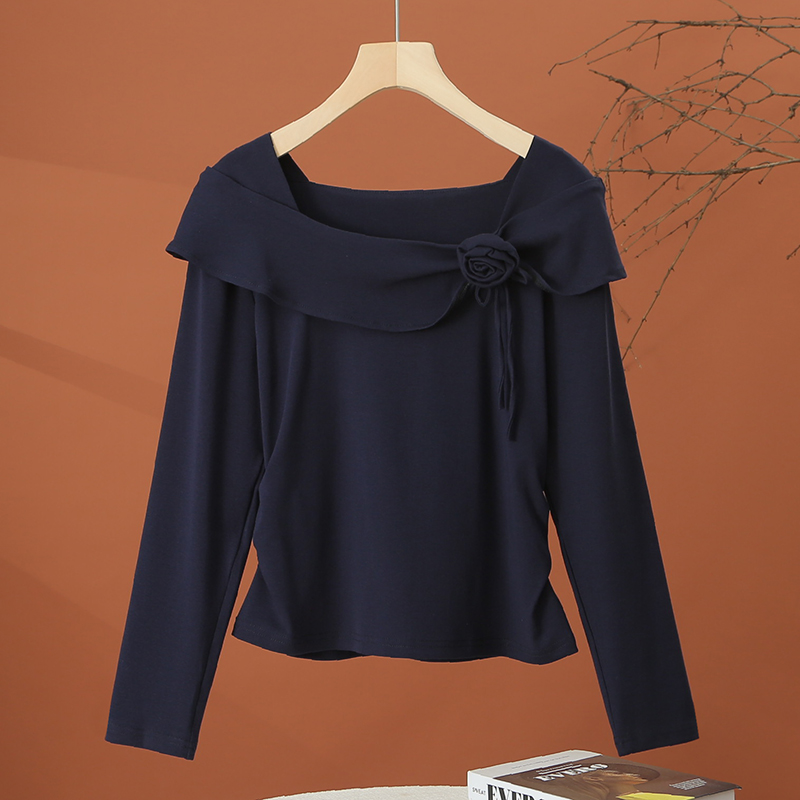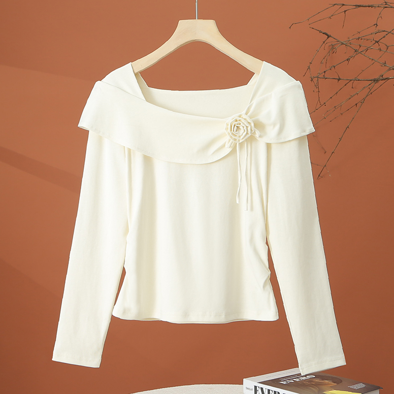 辣妹修身 打底衫 显瘦上衣 T恤女春秋内搭短款 设计感小众正肩V领长袖
