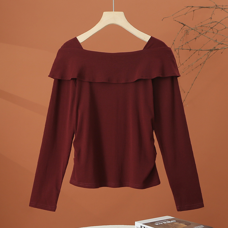 上衣 加绒纯色木耳边t恤女孩内搭洋气纯棉长袖 女童打底衫 春秋冬款