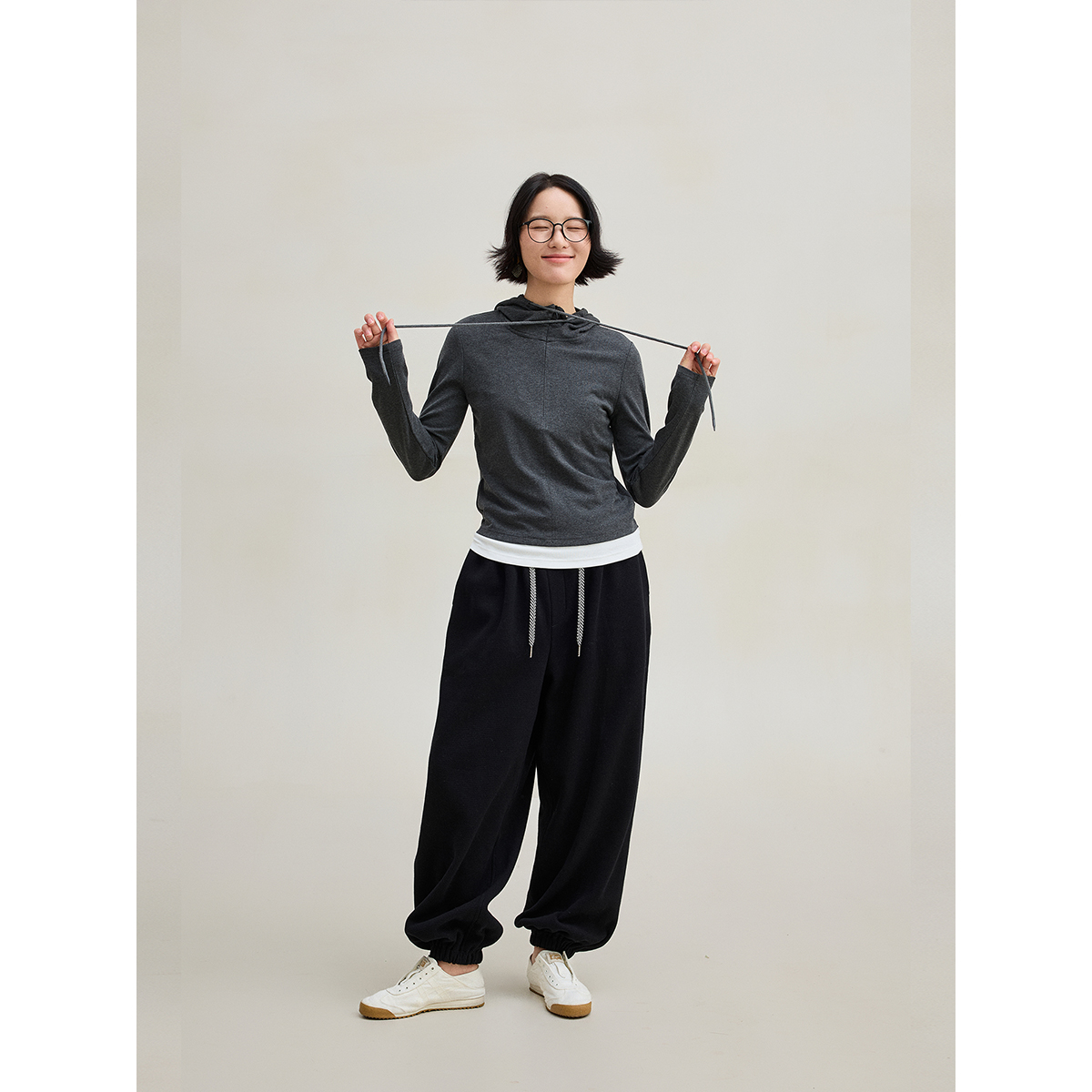 麻霖原创设计女装 简约柔软亲肤华夫格松紧腰宽松休闲束脚卫裤