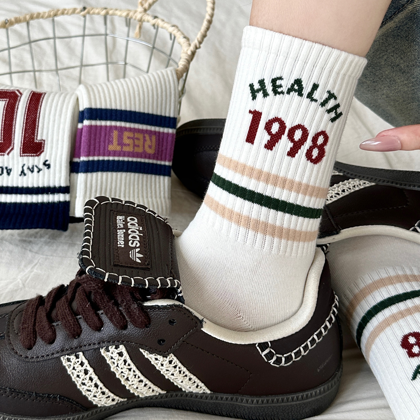 秋冬女袜2025新款 中筒袜女士袜子 粉色可爱少女卡通棉袜搭配小皮鞋