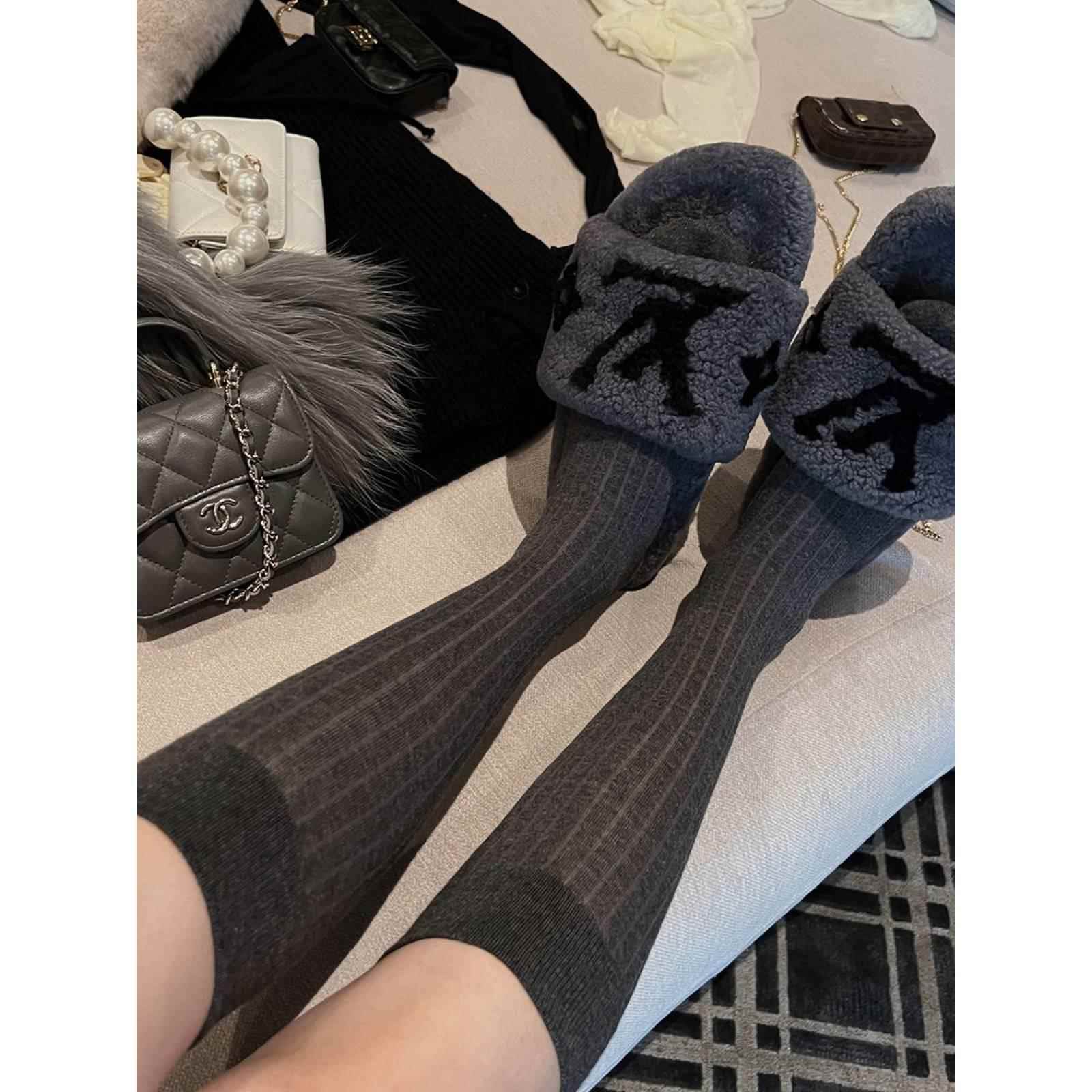 竖条纹棉质小腿JK袜 新款 秋冬长筒小腿袜女款 灰色显瘦针织日系秋季