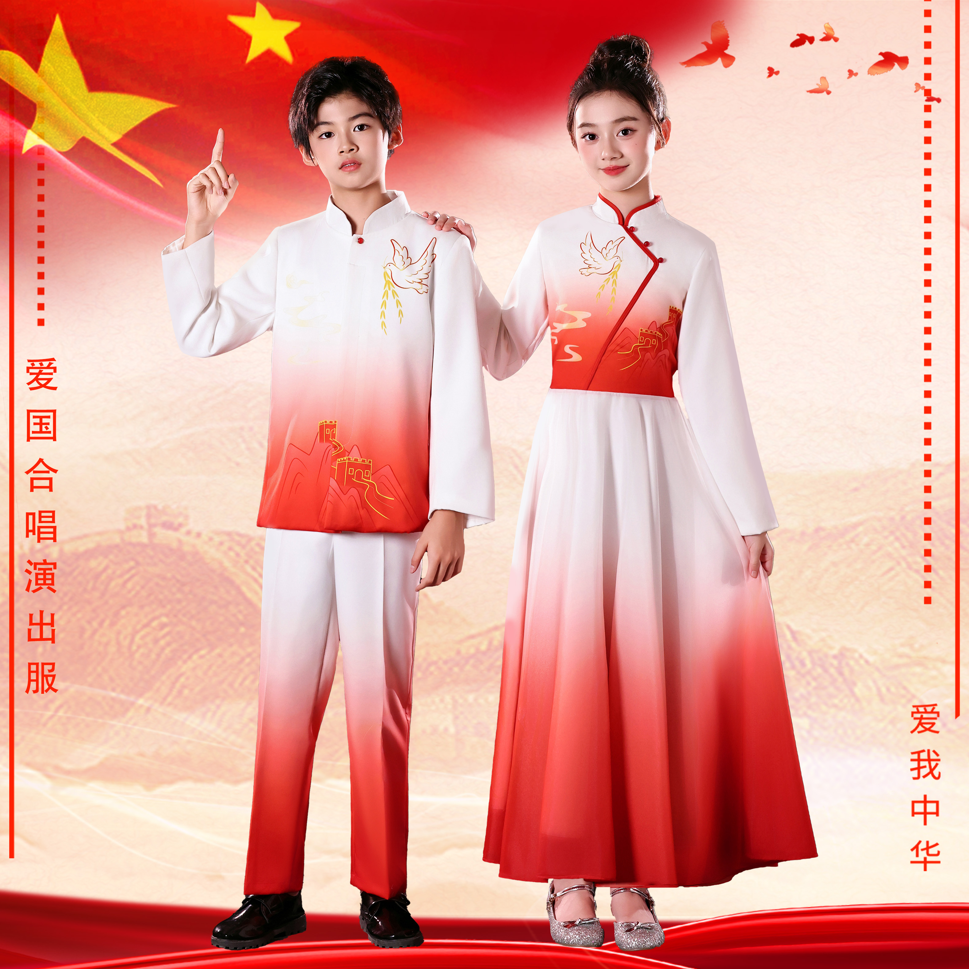 儿童爱国主题朗诵演出服中小学生国庆红色合唱礼服演讲比赛表演服